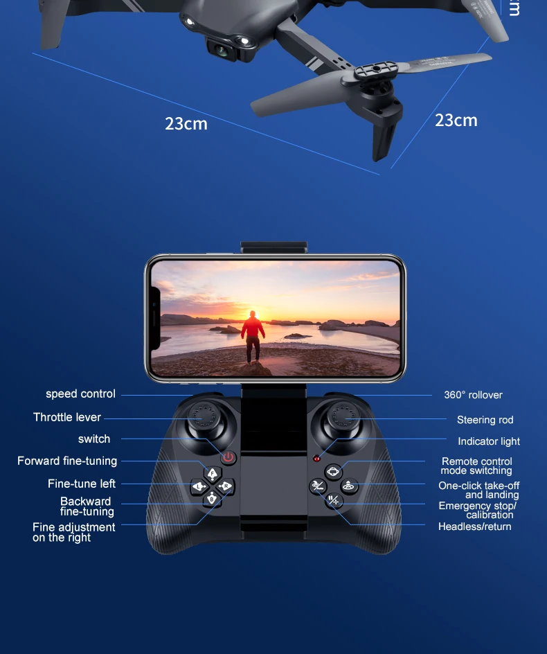 - Il y a 3 caméras au choix. Équipé d’une caméra grand angle 720P/1080P/4K pour une large gamme de photos et de vidéos haute définition.