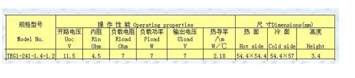 Nous avons testé le produit 55x55MM 7V 1.25A 55×55 Thermoelectric Power Generation Peltier Tech TEG1-241-1.4-1.2