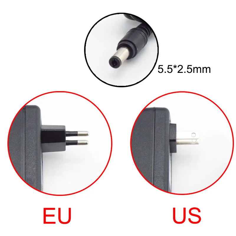 - Interface DC de 5.5×2.5mm (compatible avec 5.1×2.1mm et 5.5×2.5mm)