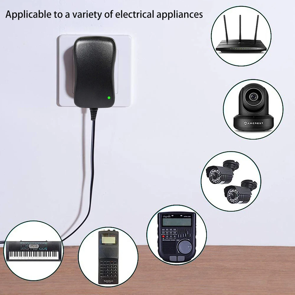 L’adaptateur convient à une grande variété d’appareils tels que les routeurs, haut-parleurs, moniteurs, caméras, smartphones, bandes de LED, pianos, claviers, pédales d’effets et autres appareils électroniques nécessitant une alimentation de 3V à 12V avec une intensité maximale de 2.1A.