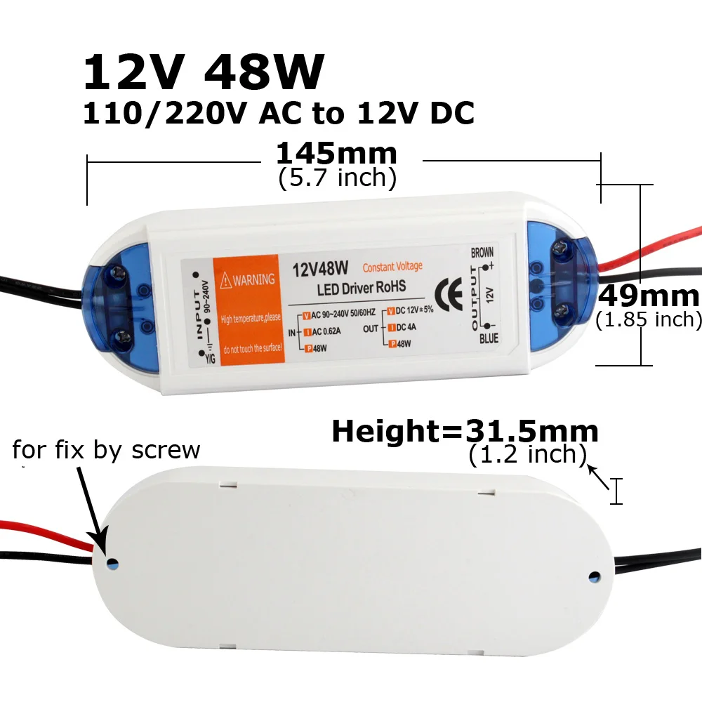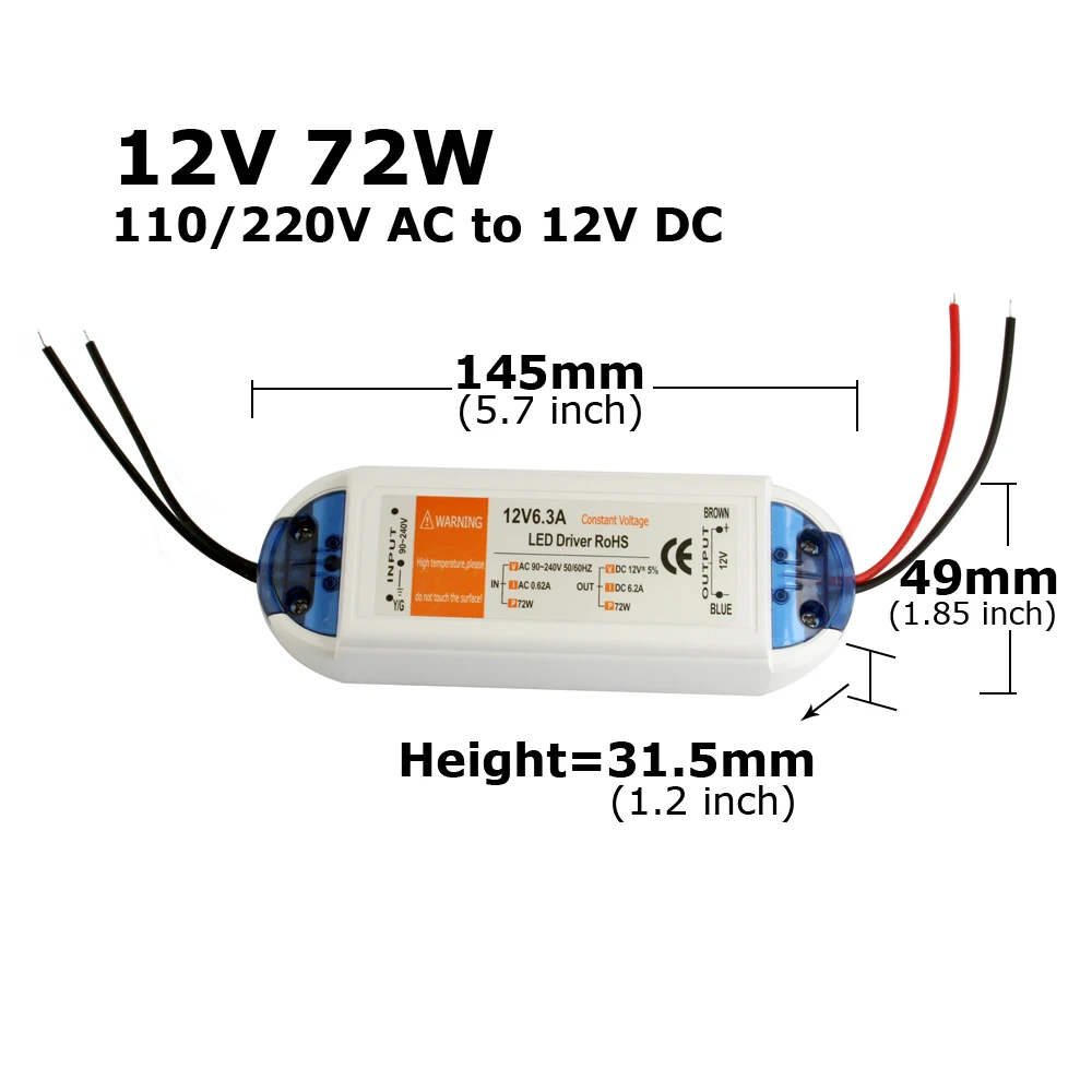 L’adaptateur d’alimentation pour bande LED CCTV est un pilote LED 12V conçu pour les bandes LED. Il est équipé d’une protection contre les surintensités et les courts-circuits. Son courant est suffisant et ne donne pas de faux contacts. Il offre plusieurs options de puissance allant de 18W à 100W. La tension d’entrée est de AC 110V à 220V, et la tension de sortie est de DC 12V (+/- 5%). Fabriqué en plastique, il peut fonctionner dans une plage de température de 0 à 40 degrés Celsius et peut être stocké entre -20 et +60 degrés Celsius.