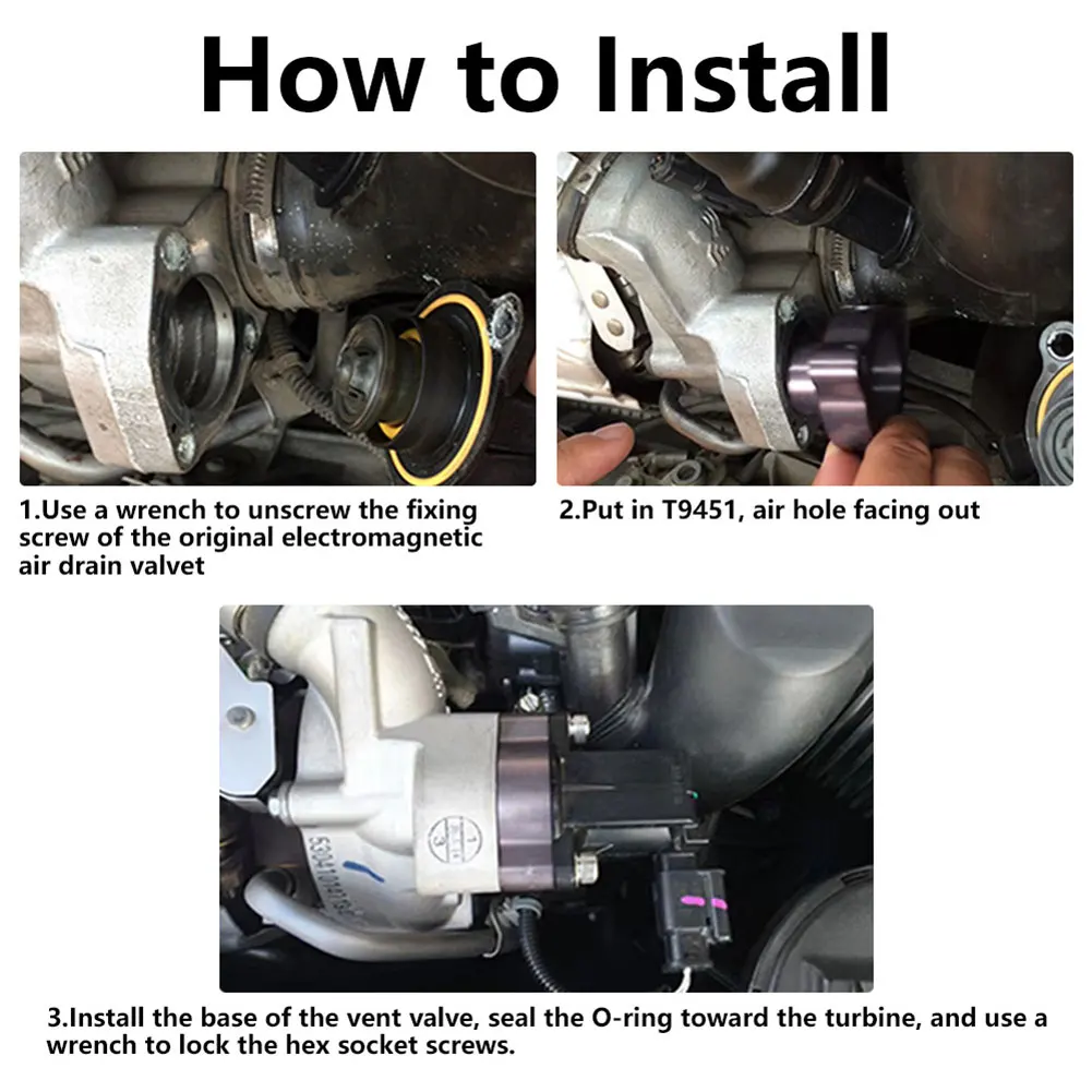 L’adaptateur de soupape de soufflage en alliage d’aluminium T9451 est spécialement conçu pour les modèles Audi B8 1.8/2.0 TFSI 2007-2015 et VW Golf GTI MK6 2.0TSI. Il offre une installation boulonnée directe, ce qui vous permet de l’installer facilement et rapidement sur votre véhicule sans avoir besoin d’adaptateurs supplémentaires.