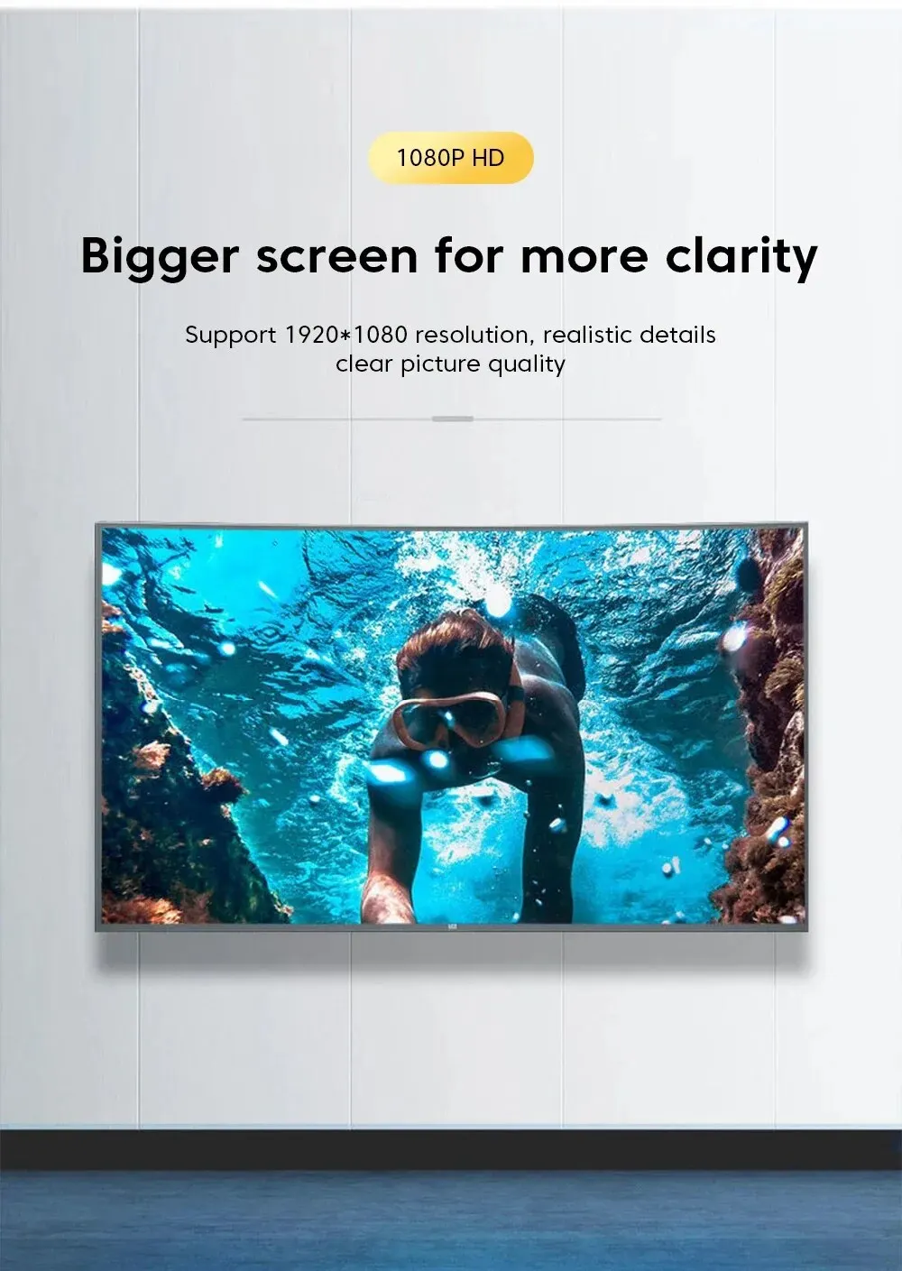 - Compatible avec PC/ordinateur portable/DVD/PS3 / Xbox360 / Sky HD/Apple TV et d’autres appareils haute définition, peut être connecté à un écran/projecteur VGA ou à d’autres écrans