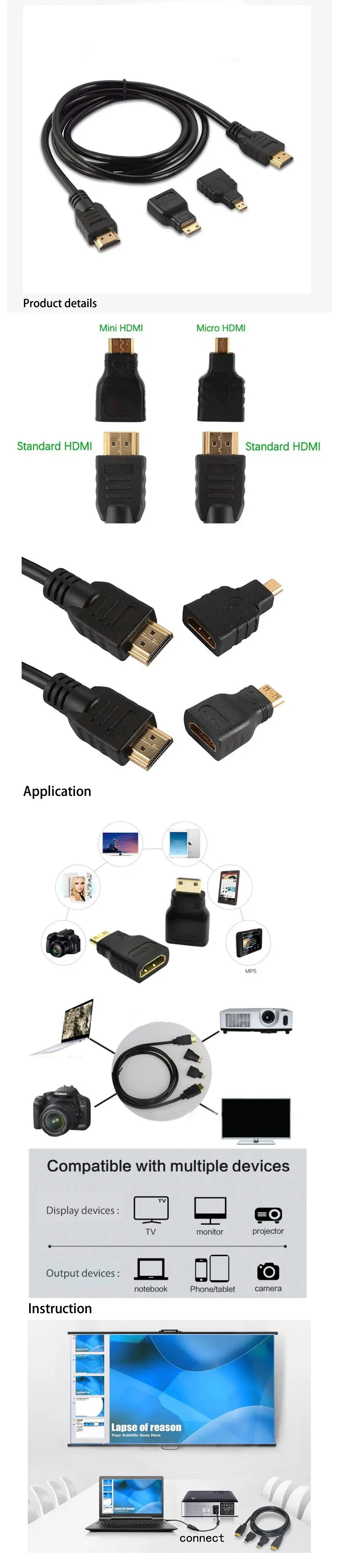 Câble HDMI vers HDMI + Adaptateur HDMI vers Mini + Adaptateur HDMI vers Micro HDMI.