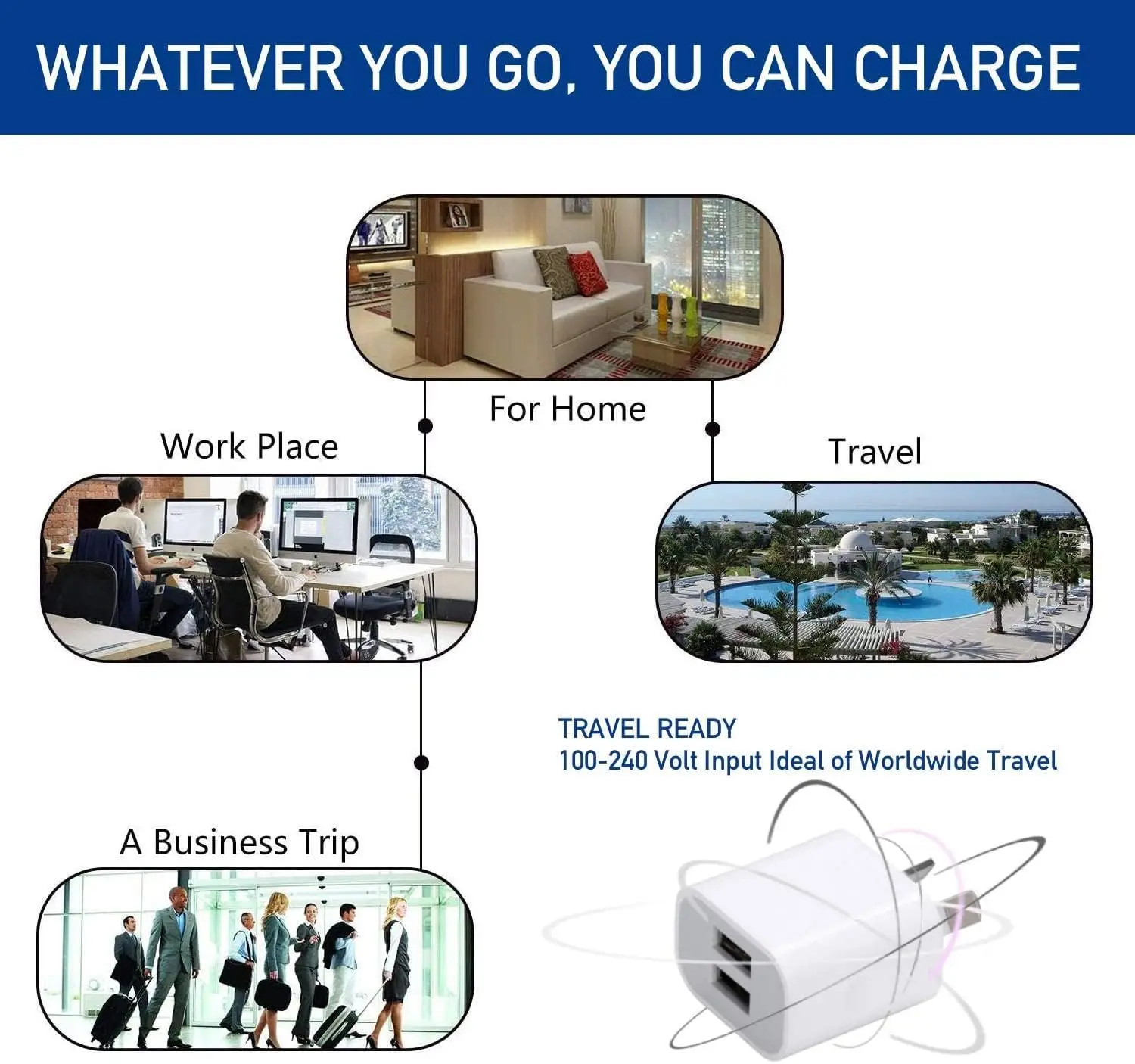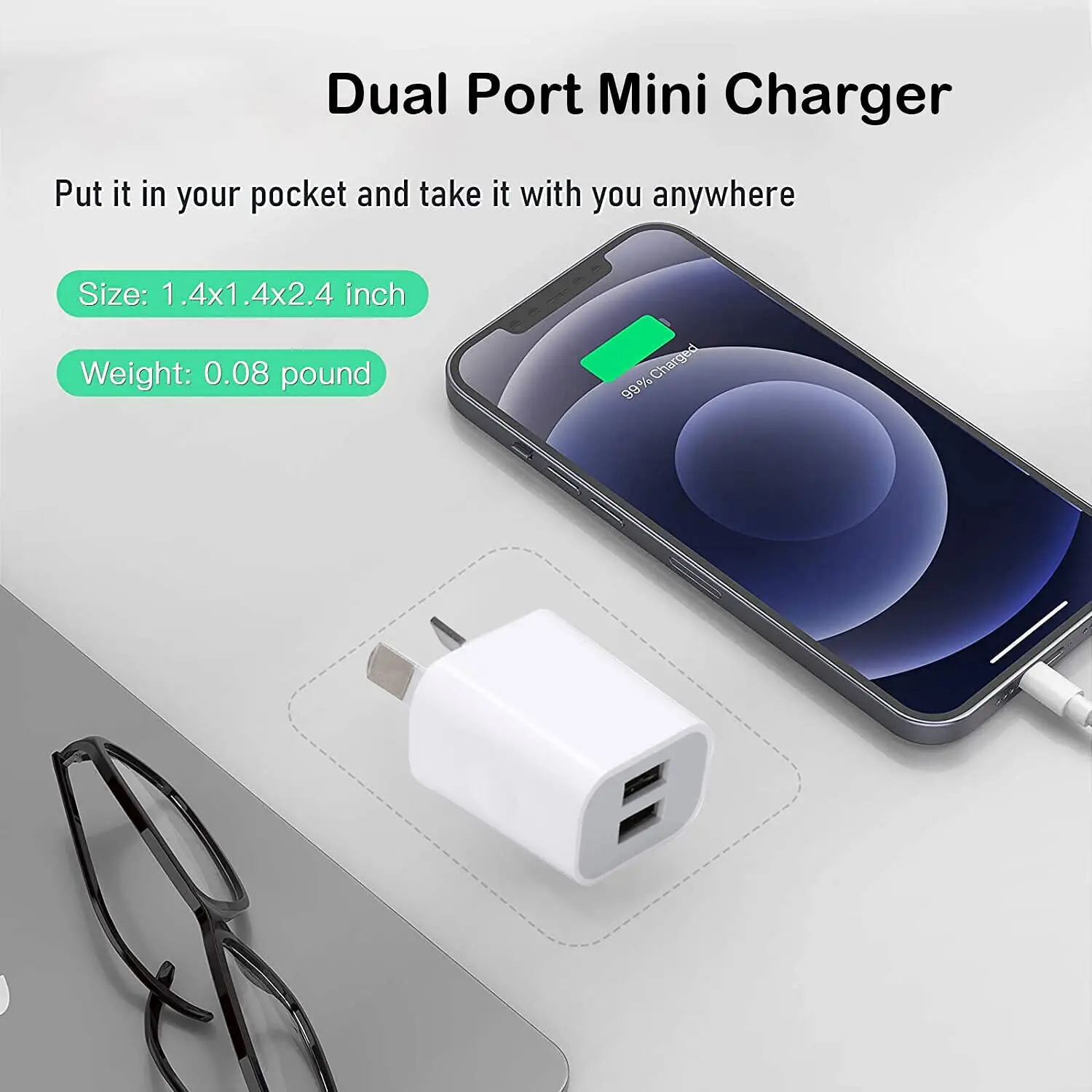 Le chargeur mural USB double port avec prise AUS est exactement ce dont vous avez besoin! Vous pouvez charger simultanément deux appareils-téléphone intelligent, casque Bluetooth, Kindle, téléphone ou tout autre appareil 5V alimenté par USB.