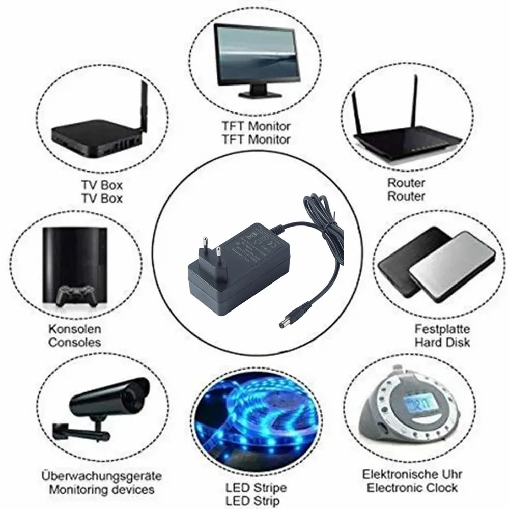 Cet adaptateur convient à une large gamme d’appareils électroniques tels que les distributeurs d’eau, les horloges électroniques et les sèche-linges.