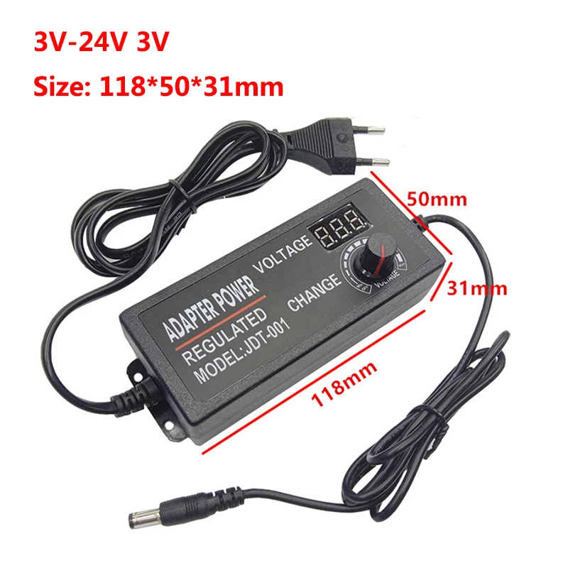 - Entrée AC de 100-240V et sortie DC réglable allant de 3V à 24V