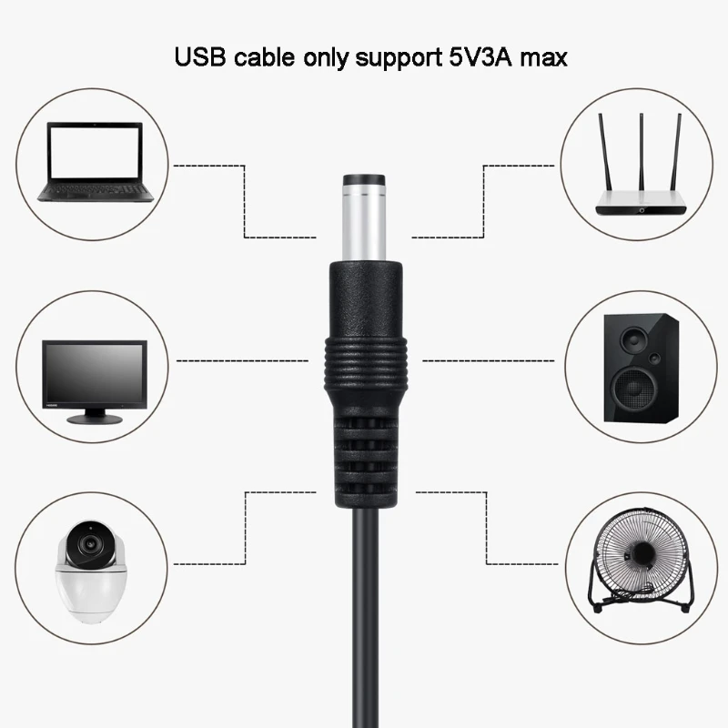 Le câble d’alimentation USB vers DC, avec ses 8 connecteurs interchangeables, est un produit polyvalent et pratique. Il permet de recharger une variété d’appareils tels que des ventilateurs, des haut-parleurs, des routeurs et des lampes LED.