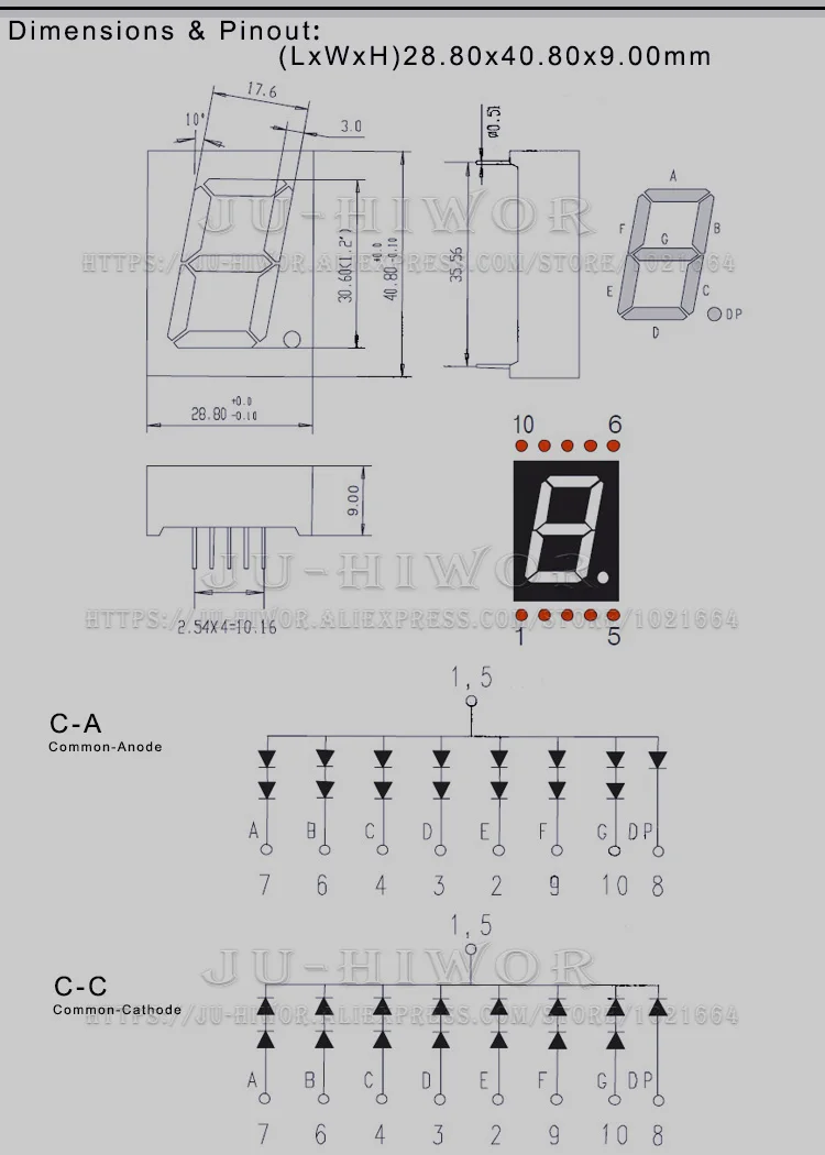 Les LED d’affichage numérique Digitron C-C 120101AY et C-A 120101BY sont des pièces de 1.2 pouces avec 10 broches. Elles sont équipées d’un chiffre Bit 7 Segment et sont disponibles en couleur jaune. Ces LED peuvent être utilisées pour afficher des chiffres et des lettres. Les modèles C-C et C-A indiquent si elles utilisent une cathode commune ou une anode commune. Avec une tension d’entrée de 3.6V, ces LED offrent une luminosité élevée pour une visibilité optimale.