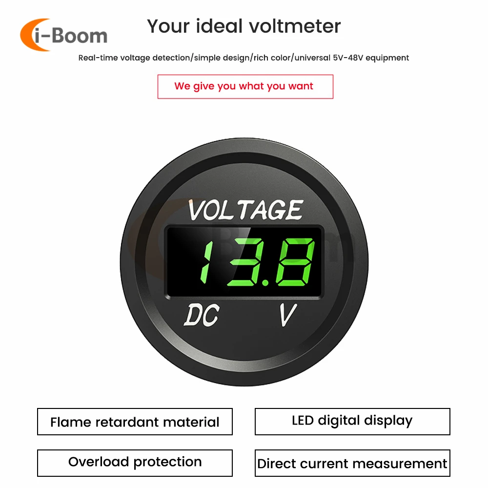 Le voltmètre étanche à affichage numérique LED est un moniteur de tension de panneau LED conçu pour les batteries de moto et de voiture. Il fonctionne avec une tension DC de 5V à 48V, notamment une tension de 12V.
