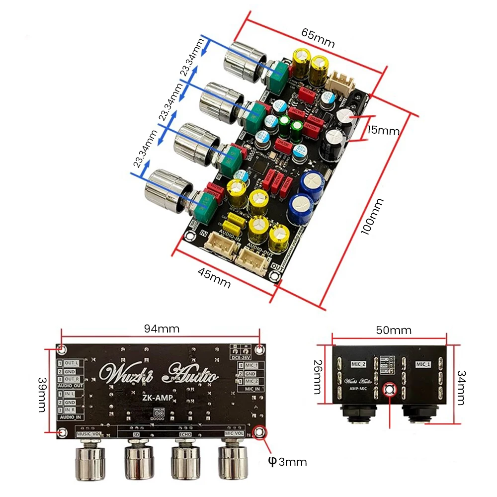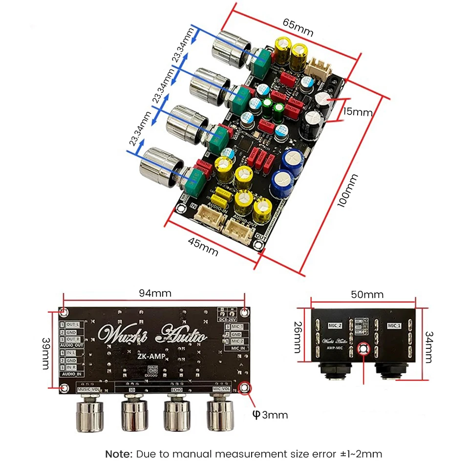 Taille: carte principale: 100x65x15mm, carte de prise MIC: 50x34x18mm