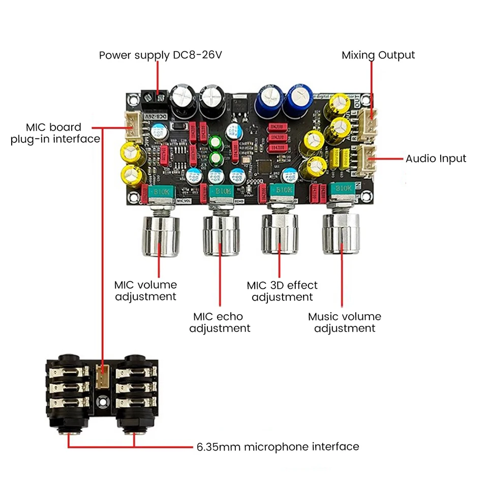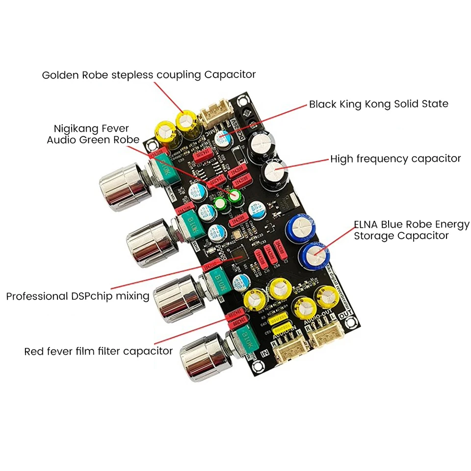 Nom du produit: carte de réverbération karaoké microphone microphone K chant chanson carte de pré-effet DSP mélange anti-hurlement