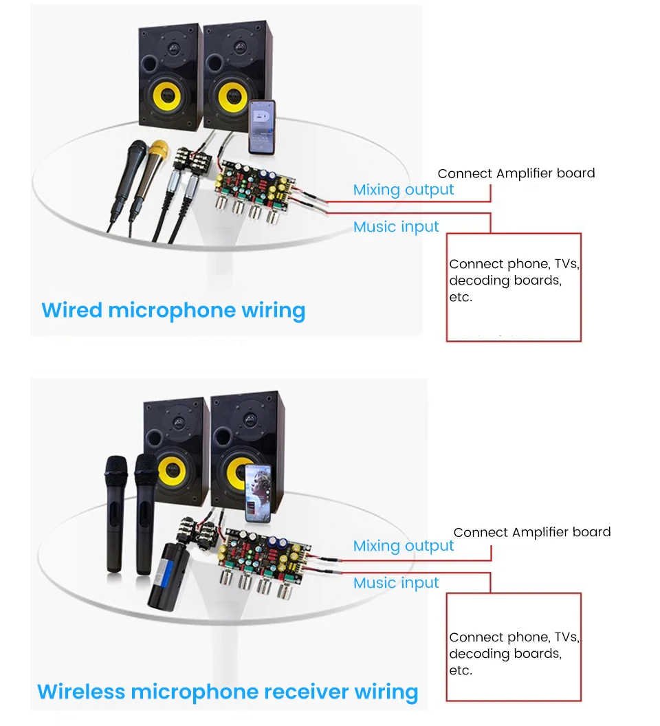 Port d’entrée musique: la source audio peut provenir de téléphones mobiles, de téléviseurs, de cartes de décodage, etc., si vous utilisez uniquement un microphone, vous ne pouvez pas le connecter.