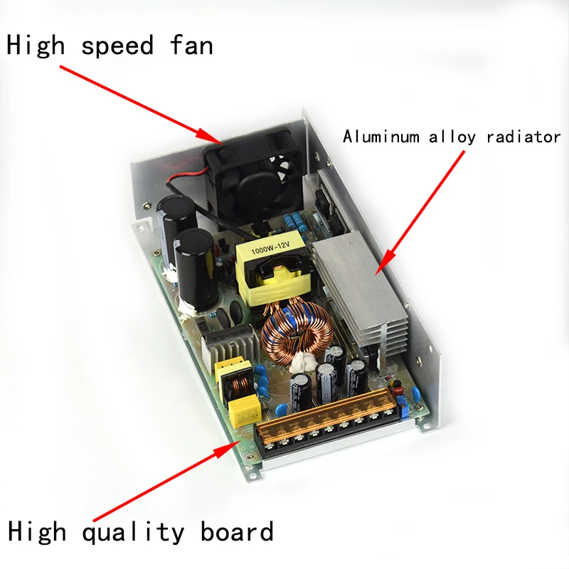 L’alimentation à découpage 1000W 800W AC 220V vers DC 48V 36V 24V 12V, SMPS sans interruption semble être un produit de haute qualité, conforme aux normes de sécurité FCC / CE. Ses caractéristiques, telles que la protection intégrée contre les surtensions, les surintensités et les courts-circuits, ainsi que sa conception de PWM pour assurer la stabilité et le rendement élevé de l’alimentation d’énergie, en font un choix intéressant pour les applications industrielles. De plus, son boîtier métallique garantit une protection supplémentaire et une dissipation de chaleur efficace.
