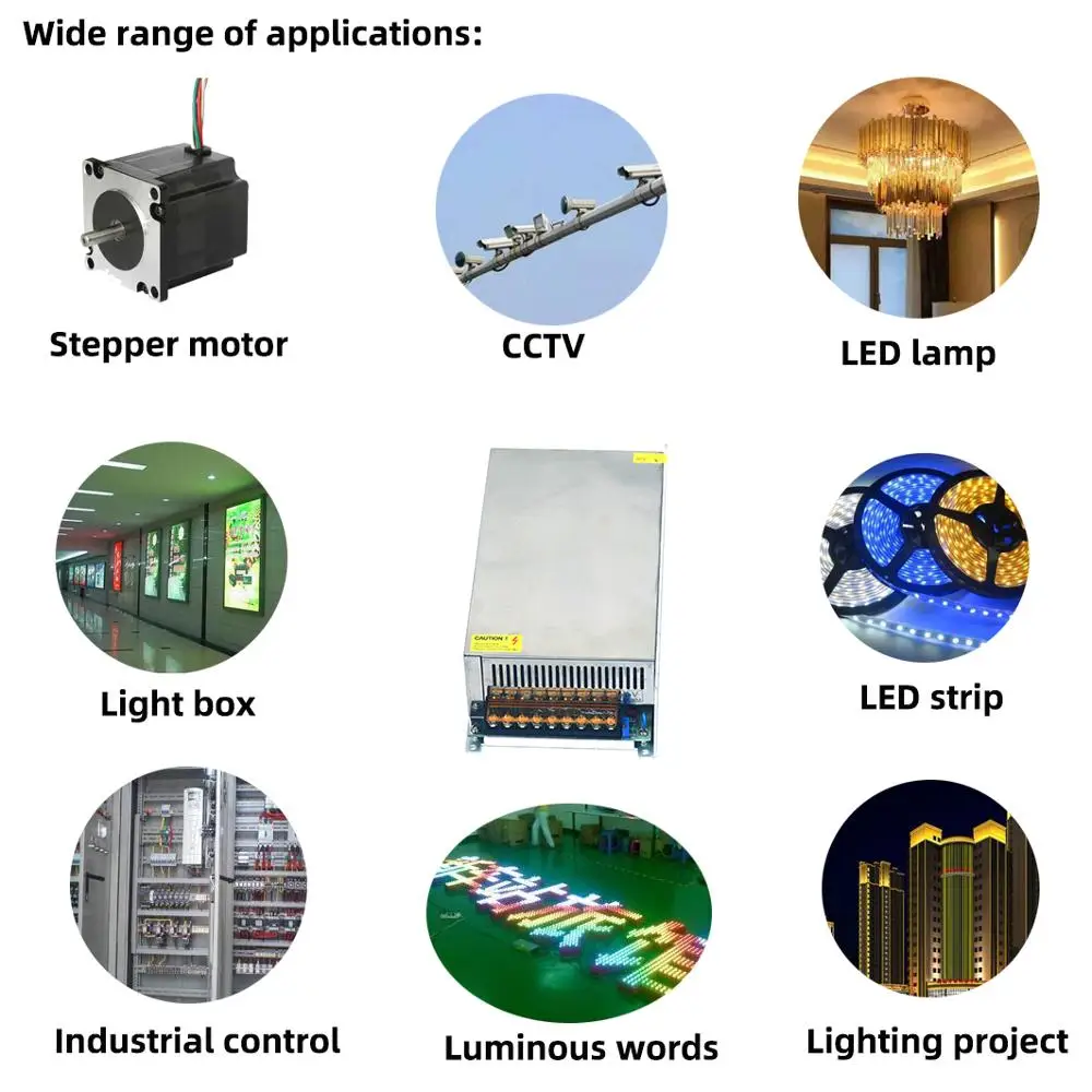 Cette alimentation convient aux bandes d’alimentation LED, à l’industrie de surveillance de sécurité et à d’autres applications industrielles.