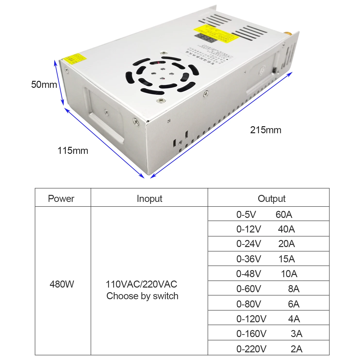 L’alimentation de commutation à affichage numérique réglable est un produit polyvalent offrant une large gamme de tensions de sortie allant de 0 à 300V. Avec une puissance de 480W, cette alimentation est capable de répondre aux besoins de différents appareils électroniques. L’affichage numérique rend le réglage de la tension de sortie facile et précis. De plus, cette alimentation est équipée de protections contre les courts-circuits, les surcharges et les surtensions, assurant ainsi la sécurité de votre équipement.
