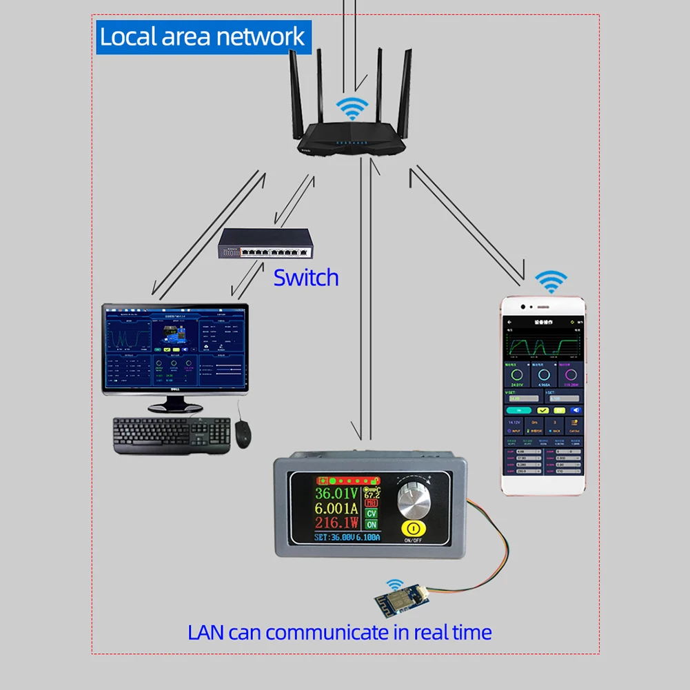 | Régulation de tension variable | Technologie abati eur | Wi-Fi intégré | CC et CV | Plage de tension : 0.6-36V | Courant de sortie jusqu’à 5A |