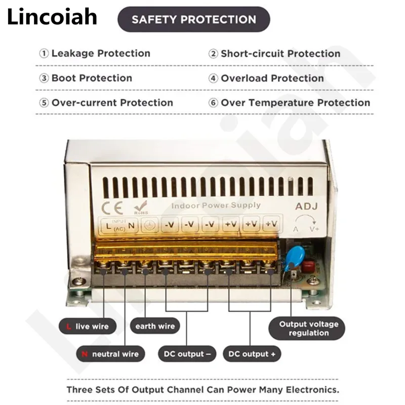 L’alimentation LED SMPS accepte une tension d’entrée de AC 90-265V.