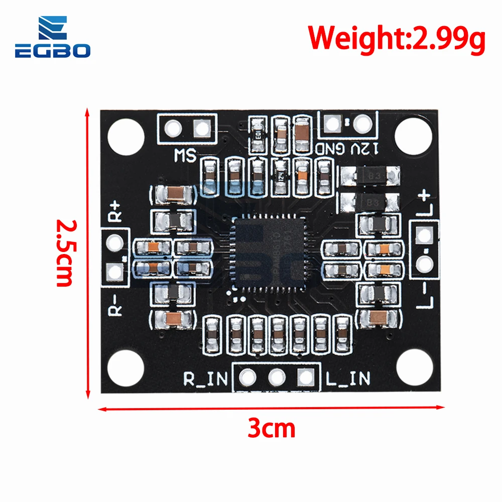 La carte d’amplificateur de puissance EGBO utilise une conception de circuit standard officielle. Elle utilise une puce d’amplificateur de micro-classe D importée des États-Unis, fabriquée par Longding. Cette puce offre une grande qualité de son et est très appréciée des mélomanes. L’amplificateur de puissance est très efficace et peut fournir une puissance de 10 W + 10 W avec une alimentation de 12V. Grâce à sa puce, il bénéficie également d’une protection contre la surchauffe et les surintensités. De plus, la carte dispose d’une fonction de commutateur intégrée.