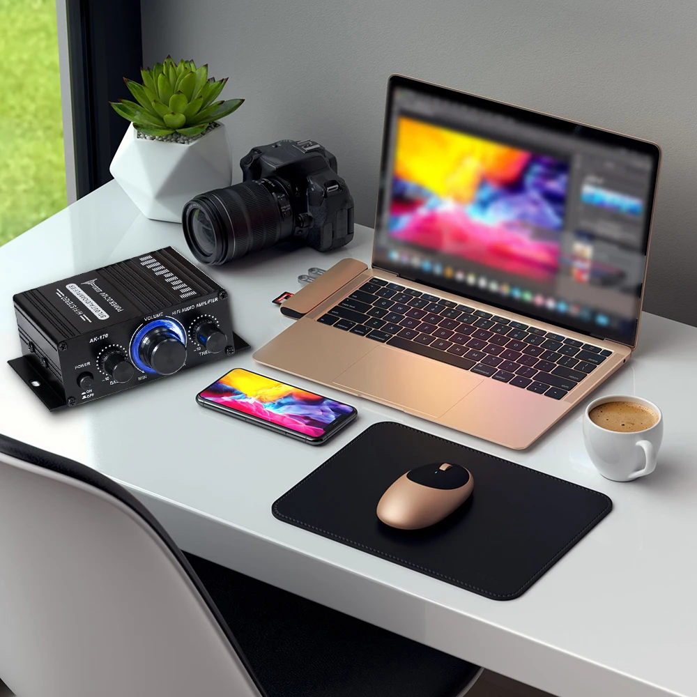 Le Diymore AK-170 est un amplificateur de puissance HiFi compact et portable qui offre des performances stables, une faible génération de chaleur et une efficacité élevée. Le son produit est naturellement équilibré et peut être contrôlé avec précision grâce aux réglages de volume, d’aigus, de basses, etc.