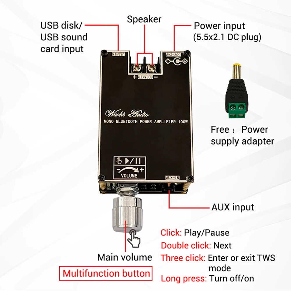 - Nom: Module de carte amplificateur audio Bluetooth Mono 100W