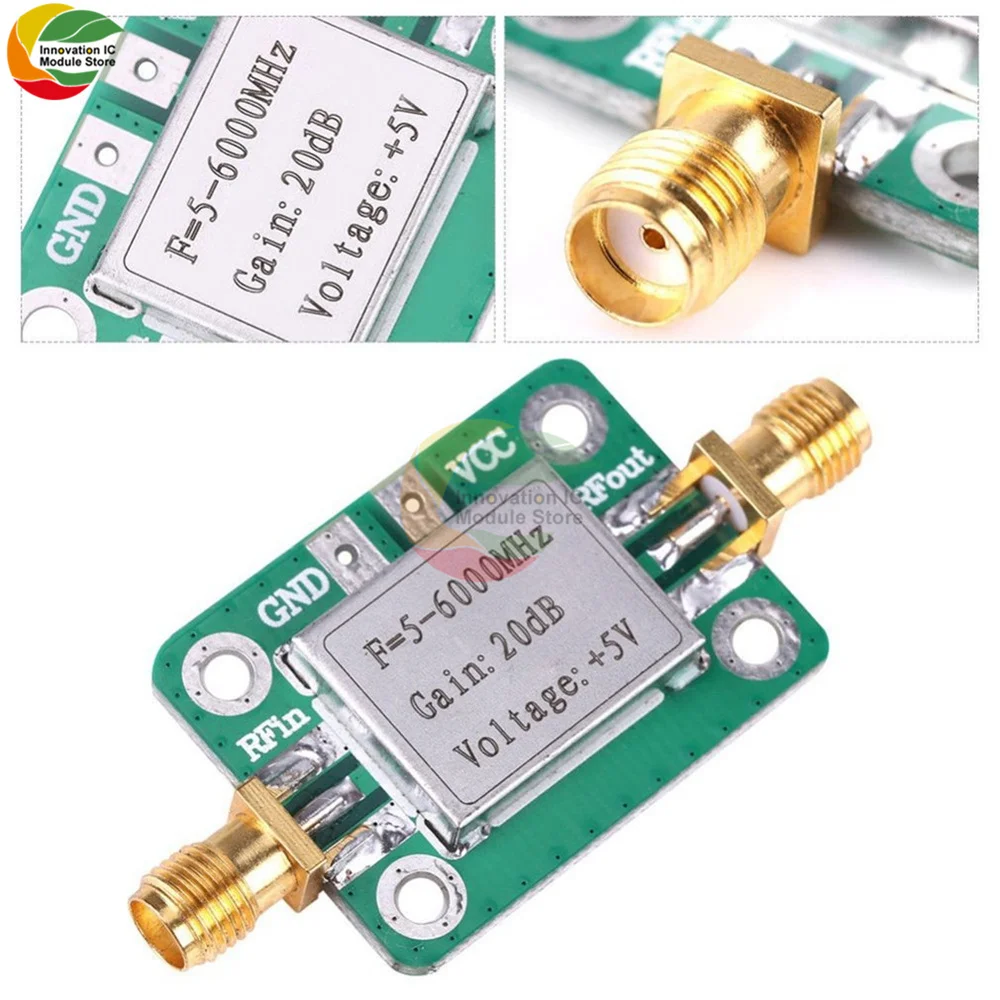 L’amplificateur est un amplificateur 5 – 6000MHz (20dB), avec une large plage dynamique, une large gamme de fréquences de fonctionnement de caractéristiques, adapté à tous les types d’amplification de signal RF à gain fixe.