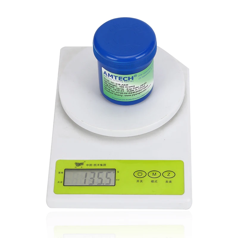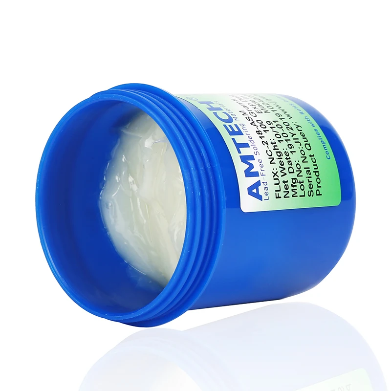 - La pâte à souder AMTECH NC-218-ASM se distingue par sa capacité de mouillage exceptionnelle sur les PCB et sa résistance d’isolation élevée.