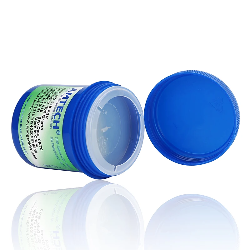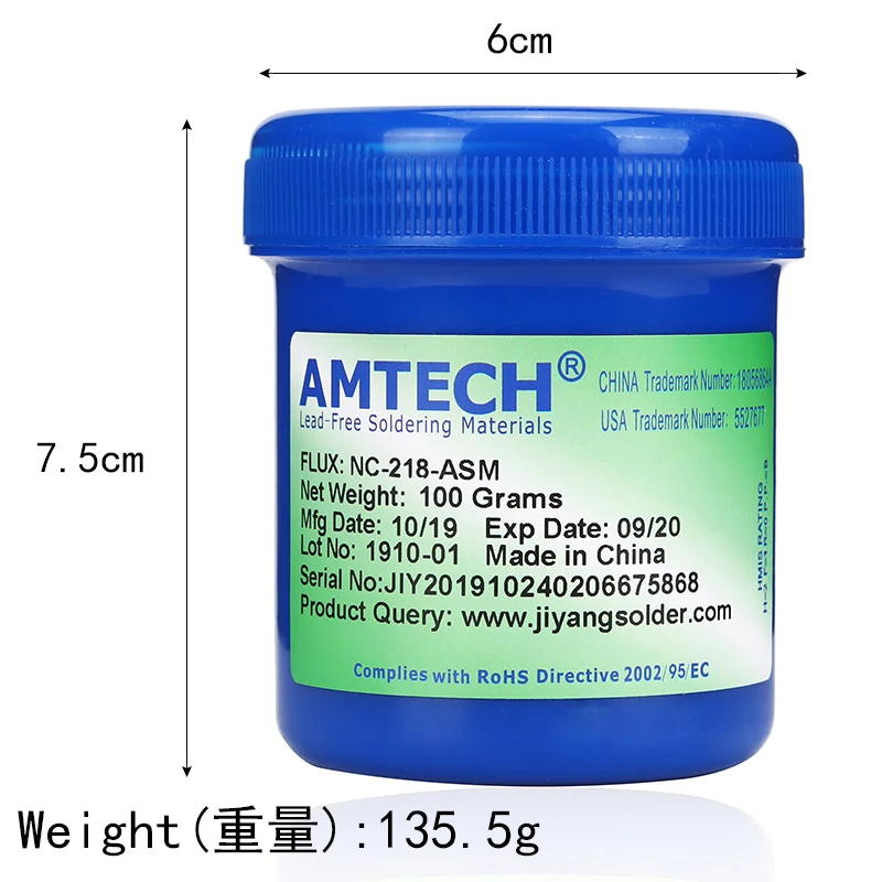 - La pâte à souder AMTECH NC-218-ASM ne nécessite pas de nettoyage car elle laisse peu de résidus de corrosion.