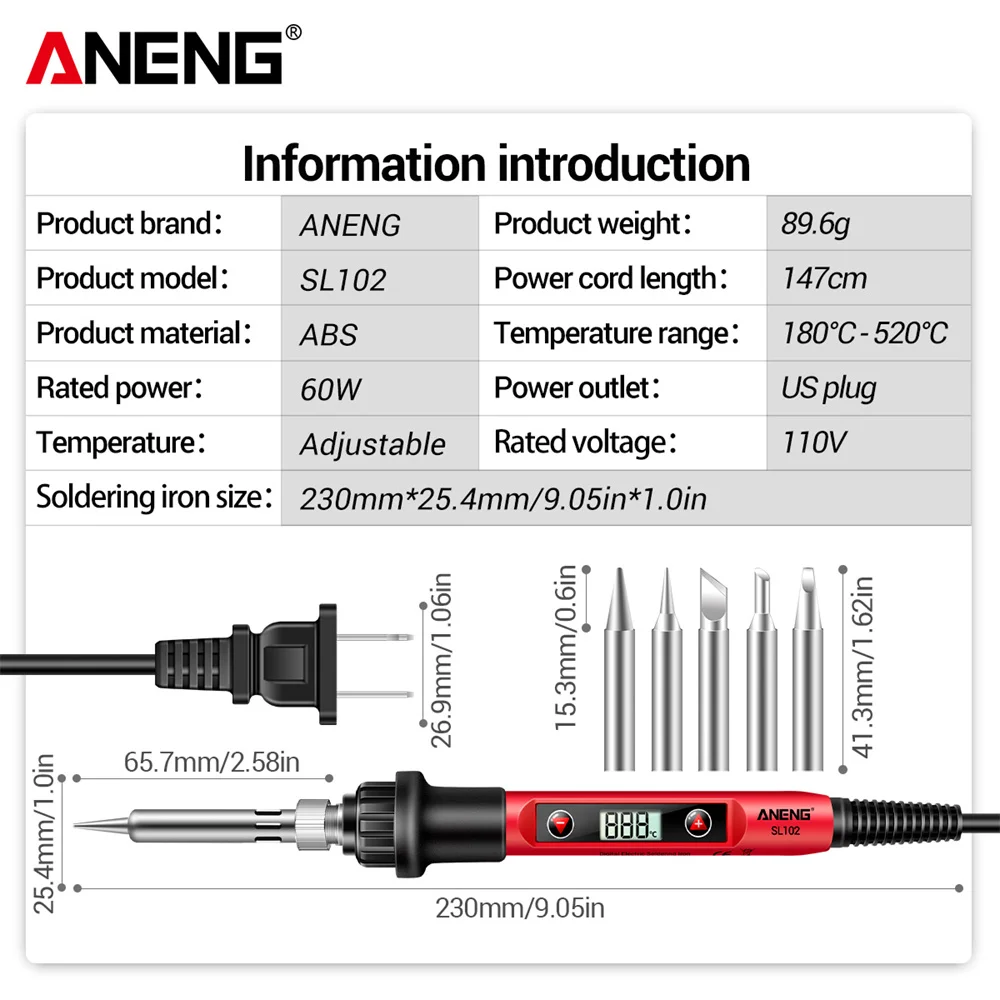 ANENG SL101/SL102 Fer à souder électrique Prise US/EU