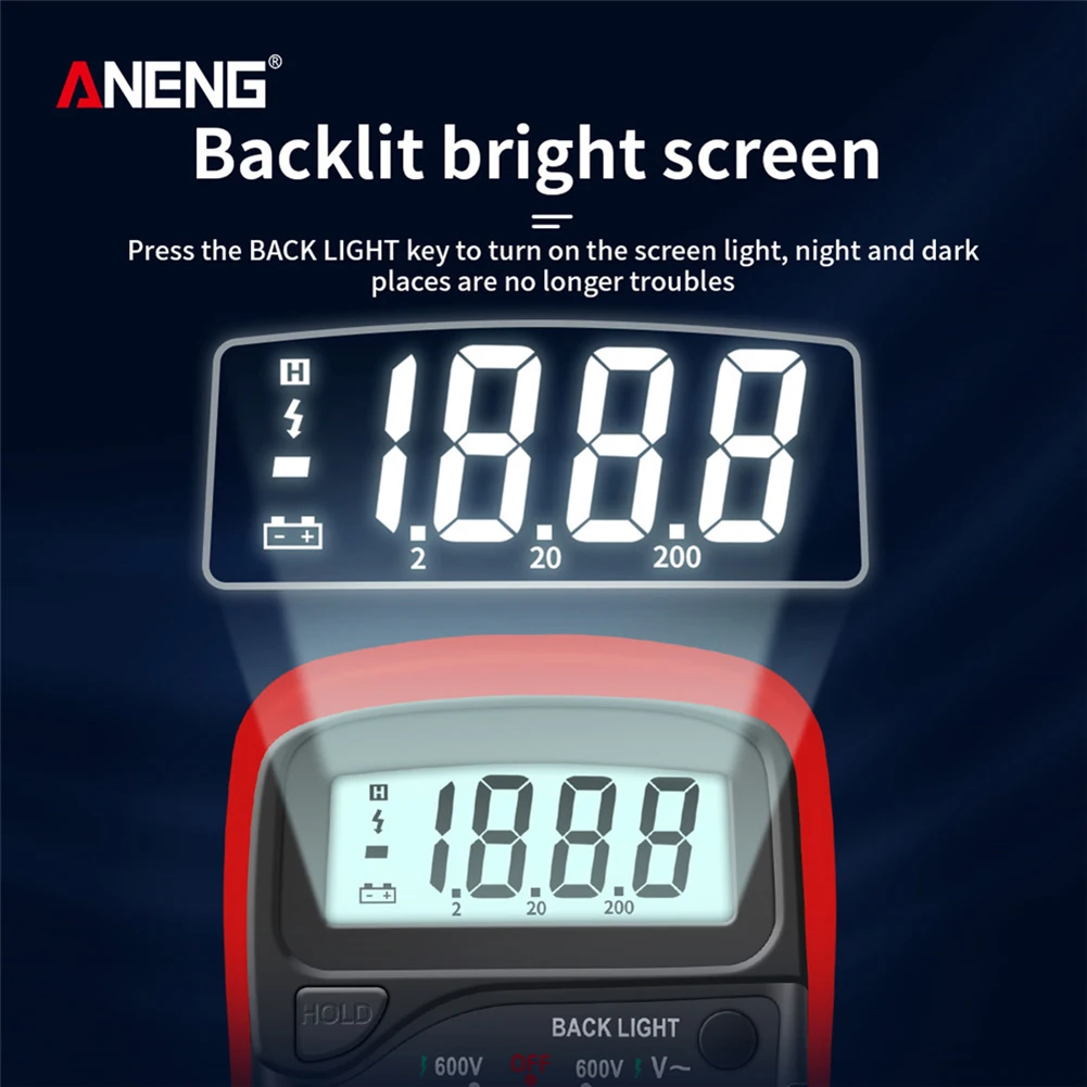 | Affichage clair et lisible | Notre multimètre numérique dispose d’un affichage LCD à chiffres, avec une lecture maximale de 1999, garantissant des mesures précises facilement lisibles. |