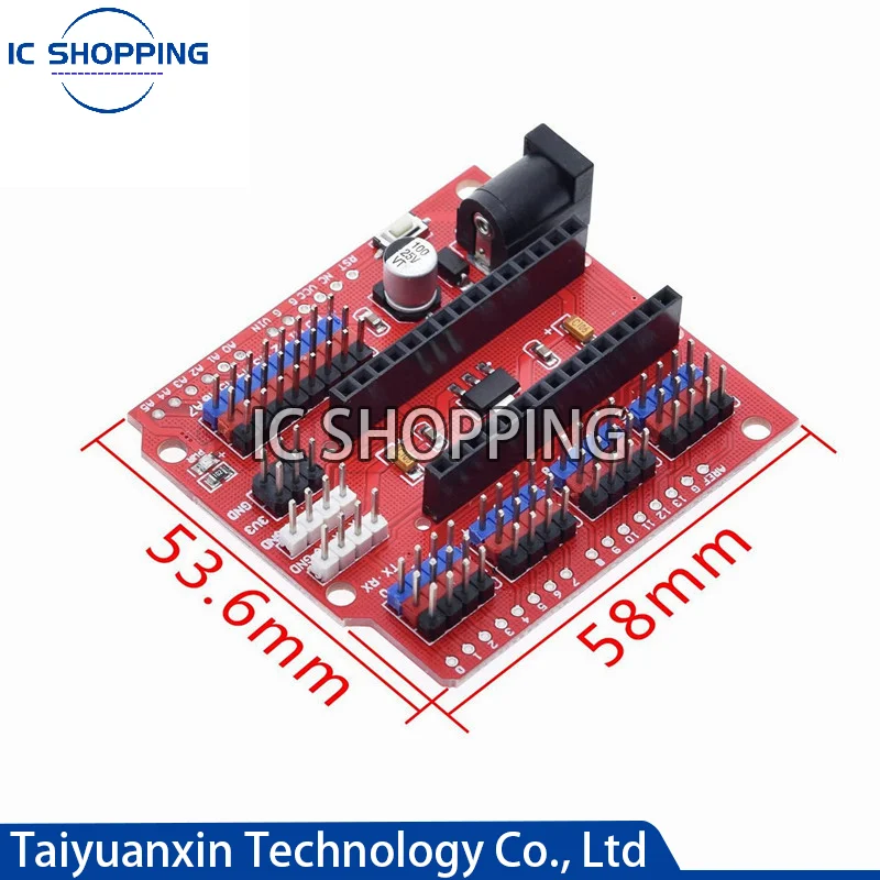 Cette carte d’extension est spécialement conçue pour être utilisée avec la carte NANO V3.0. Il est possible qu’elle ne soit pas compatible avec d’autres modèles de cartes Arduino.