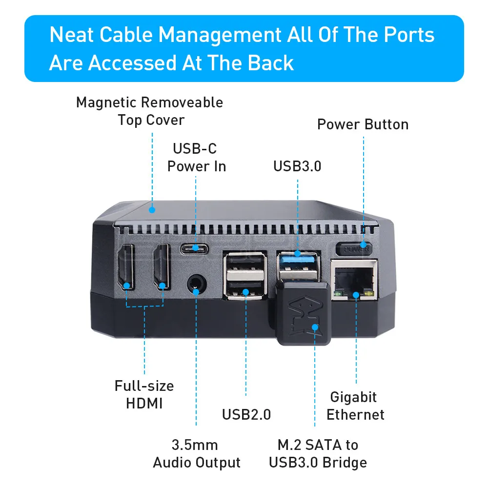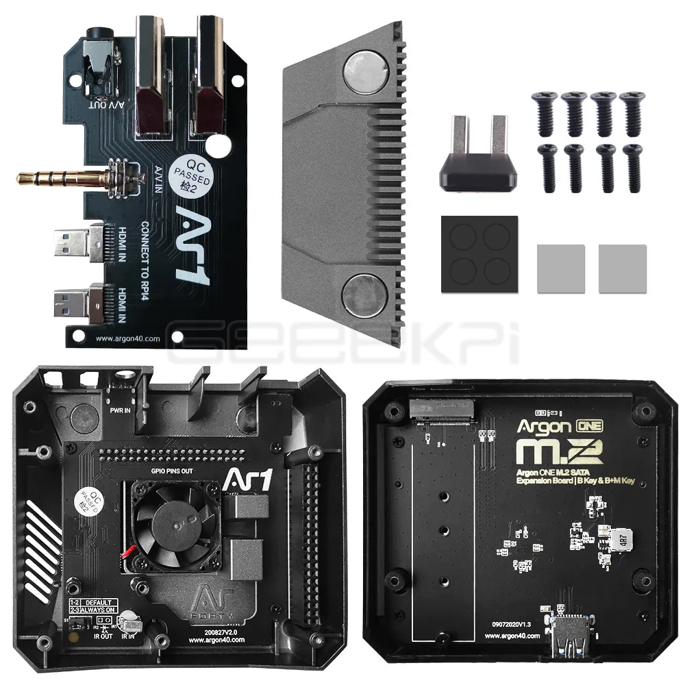L’Argon ONE-Boîtier en aluminium pour Raspberry Pi 4 modèle B M.2 SATA SSD vers USB 3.0, prise en charge de la carte UASP, ventilateur intégré est un boîtier en aluminium conçu pour fournir des fonctionnalités supplémentaires au Raspberry Pi 4. Il est compatible avec les cartes M.2 SATA SSD et permet au Raspberry Pi de démarrer à partir du SSD