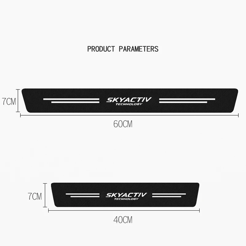 Les autocollants en cuir de protection de seuil de porte de voiture pour Mazda sont un ajout élégant et pratique à votre véhicule. Fabriqués en autocollant de vinyle en fibre de carbone 4D de haute qualité, ces autocollants sont 100% neufs et résistants à la décoloration. Ils sont également auto-adhésifs et amovibles, ce qui facilite leur installation sans endommager la peinture de votre voiture.