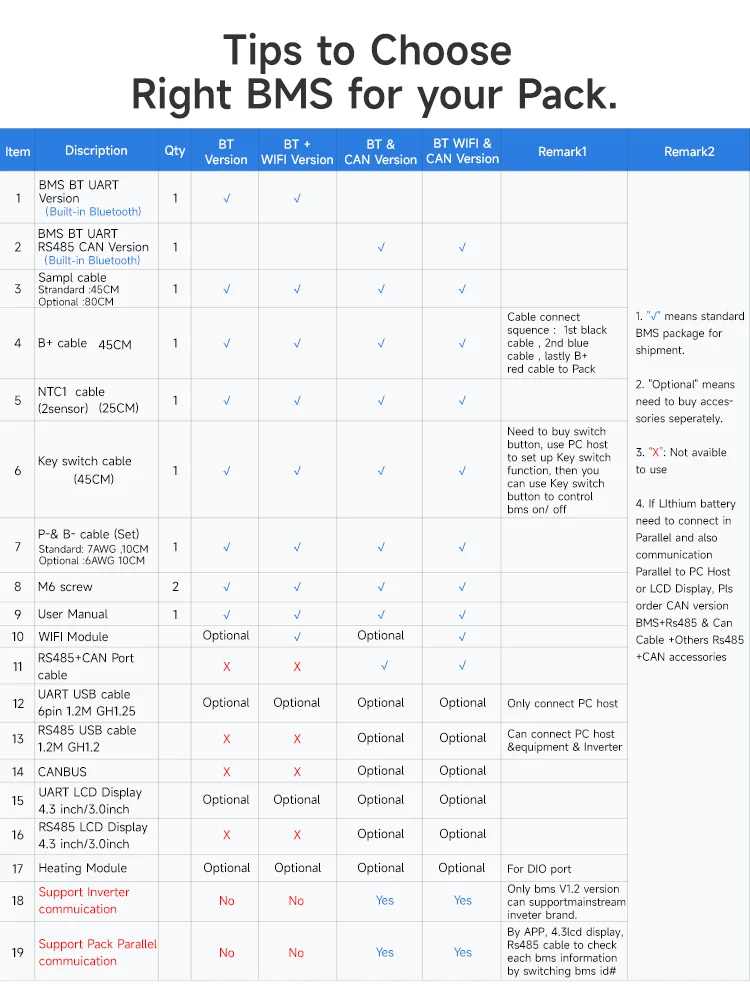 - Prise en charge de la connexion BMS en parallèle.