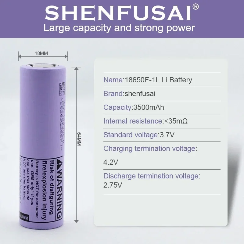 La batterie Aste au lithium-ion 18650-F1L, d’une capacité de 3000mAh, est adaptée aux cigarettes électroniques, aux outils électriques, aux véhicules électriques, aux drones, etc. Elle est produite par la marque SHENFUSAI.