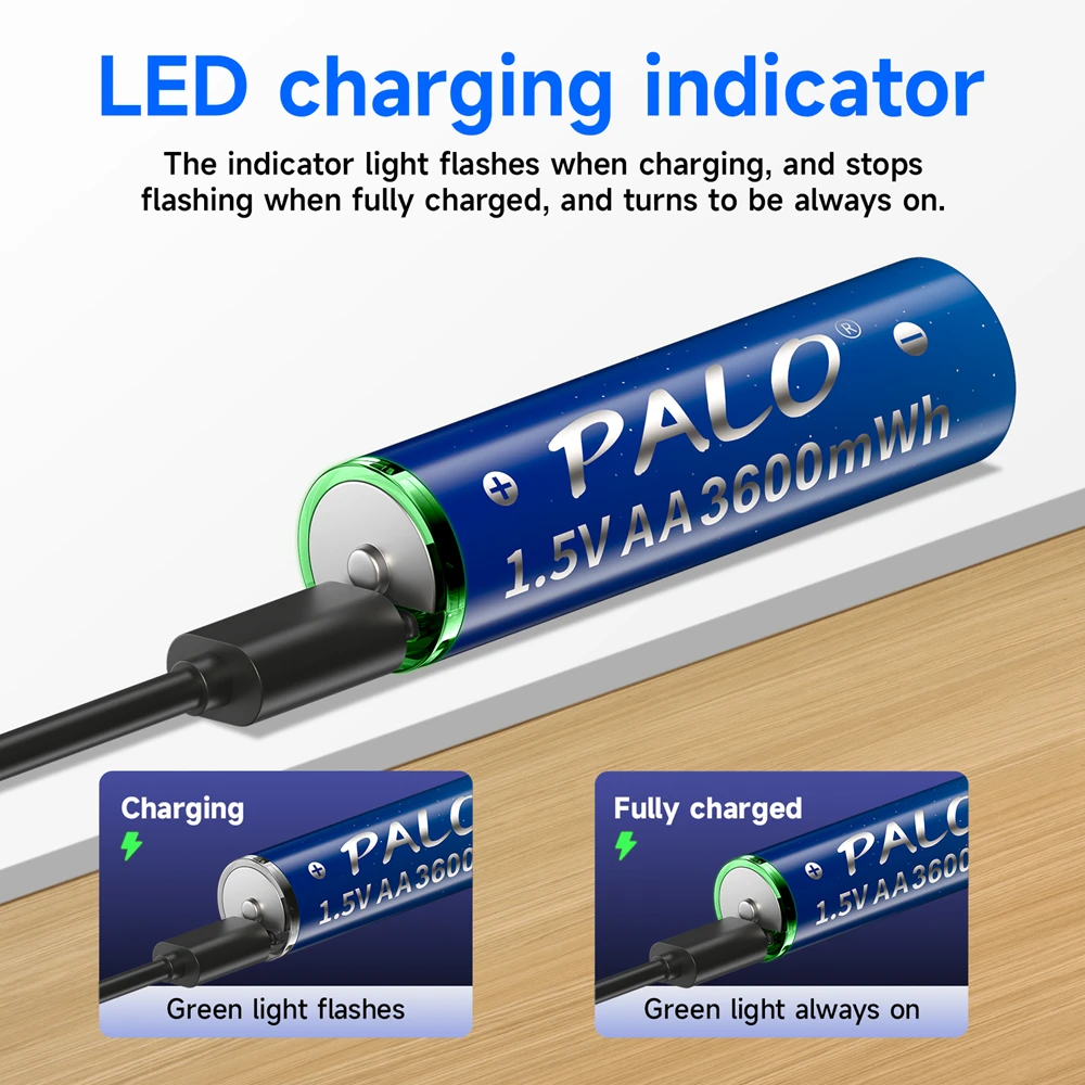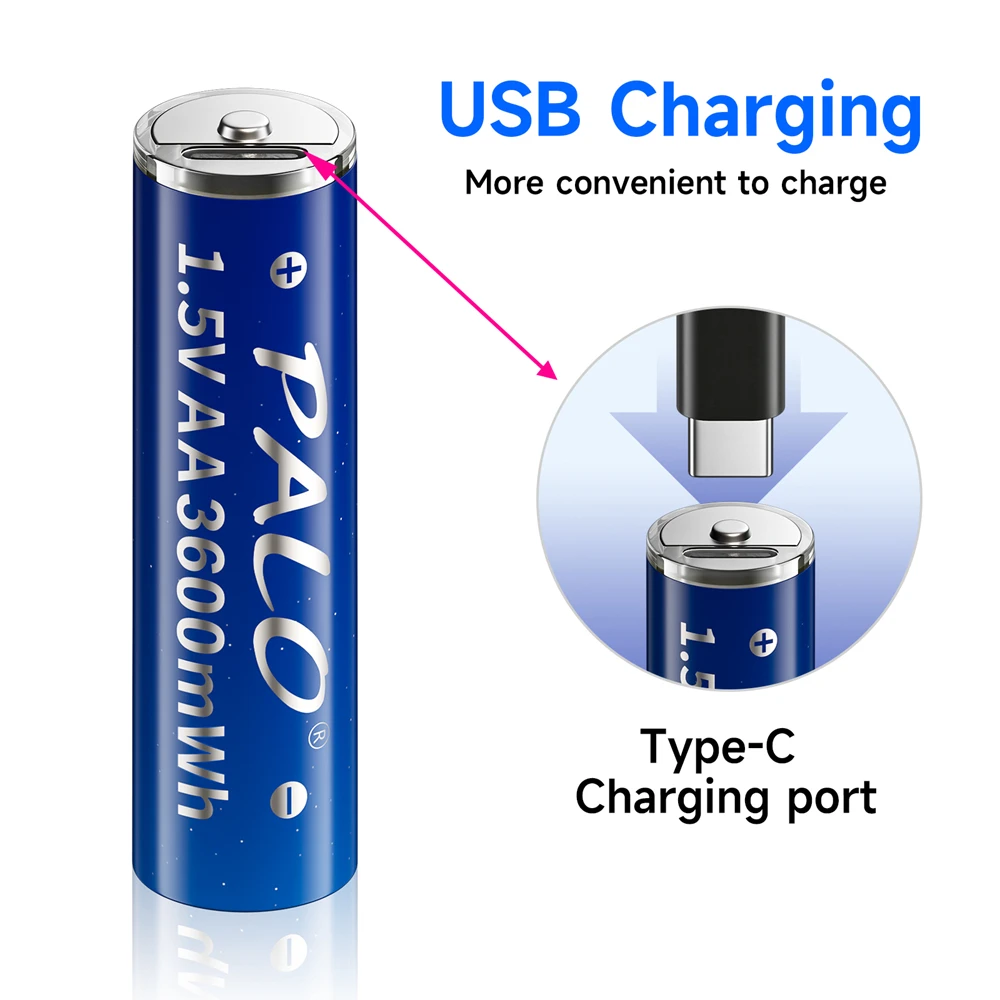 - Batterie lithium-ion AA rechargeable avec port USB