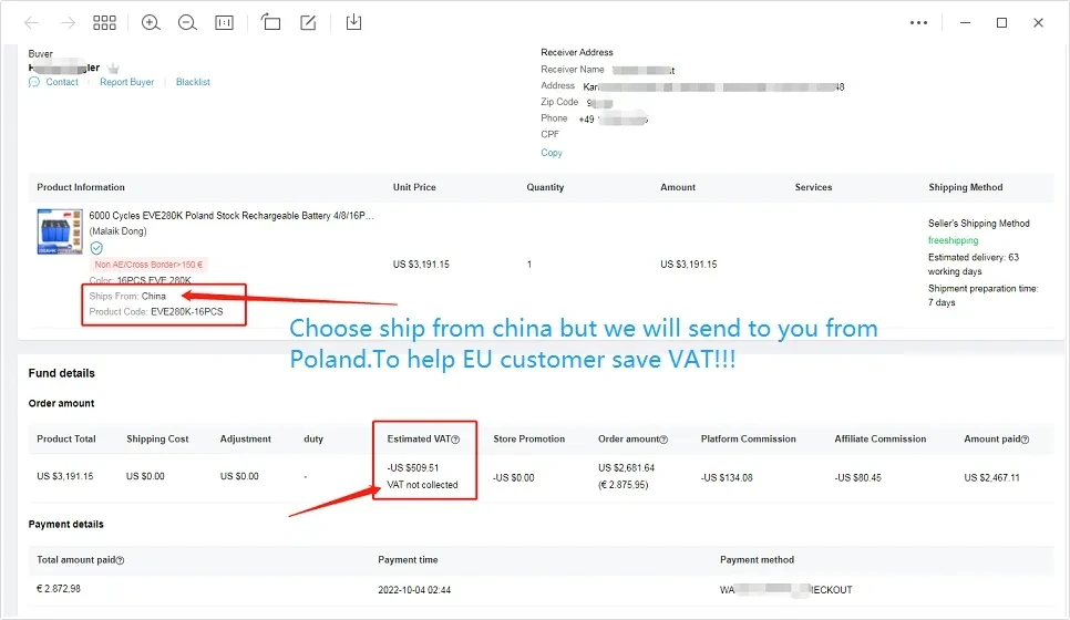 Pour les clients de l’UE, il existe une possibilité de payer 0 TVA. Pour plus d’informations sur cette option, veuillez consulter l’image ci-dessous :