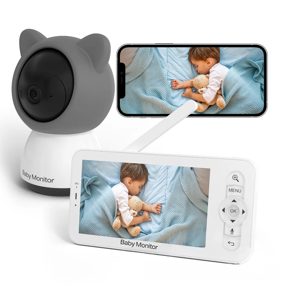 Le WOUWON-Babyphone vidéo HD est équipé d’un écran LCD de 5 pouces et d’une caméra PTZ. Il dispose de fonctionnalités telles que des berceuses pour bébé, un téléphone portable et un système de surveillance pour les nouveau-nés.