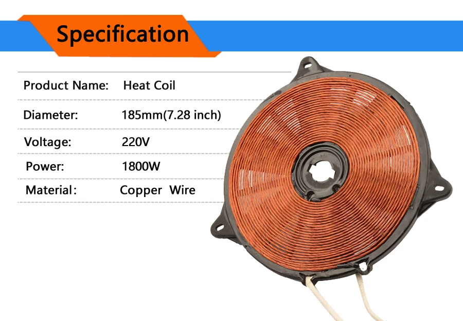 Les avantages de ce produit sont sa puissance élevée de 1800W, sa taille de 185mm qui convient à la plupart des cuisinières à induction, et son matériau en fil de cuivre qui assure une bonne conductivité thermique.