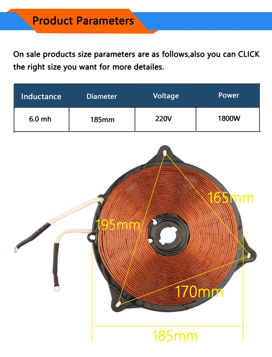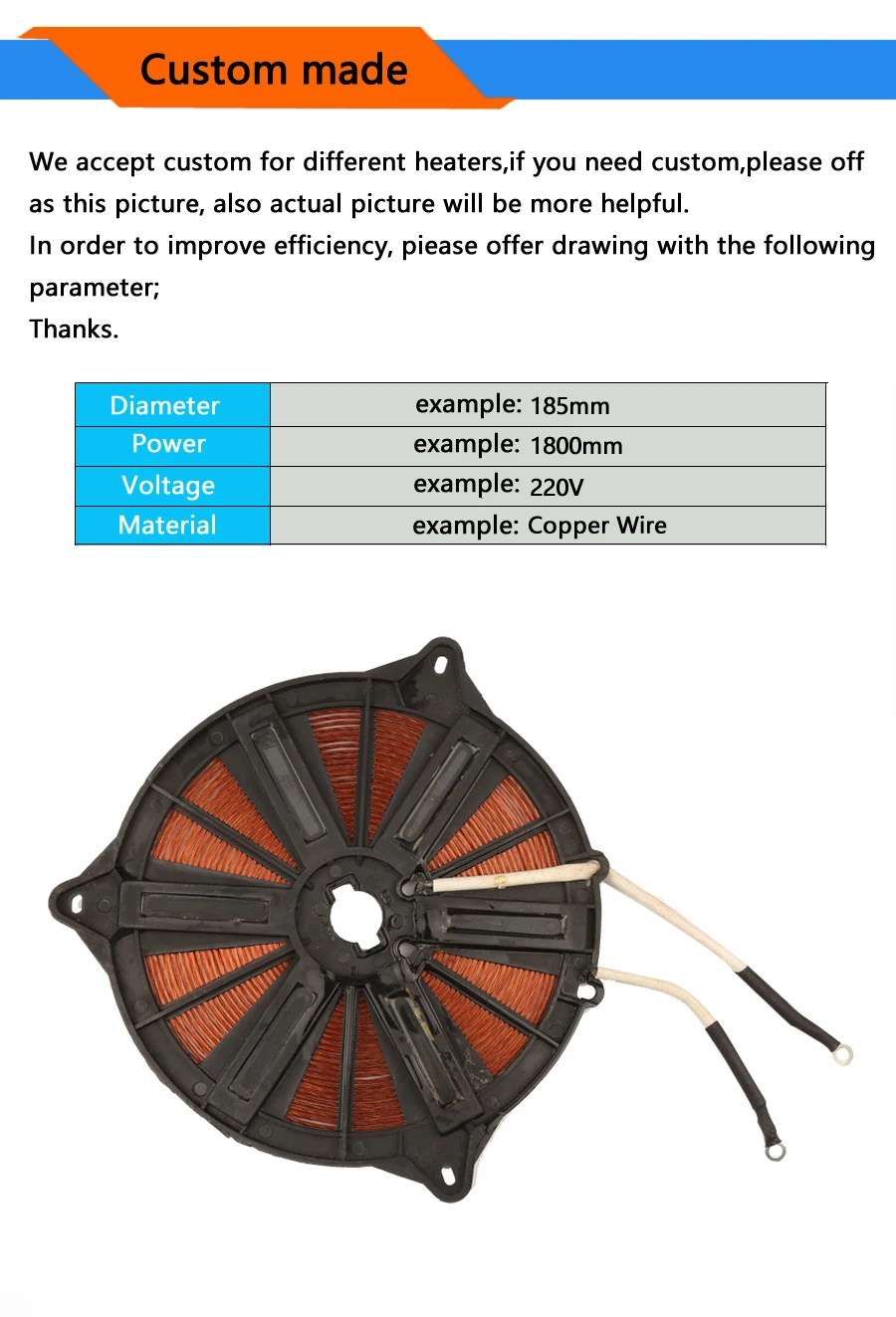 Bobine de chaleur de 1800W 185mm, panneau de chauffage d’induction de fil de cuivre, accessoire de cuiseur d’induction