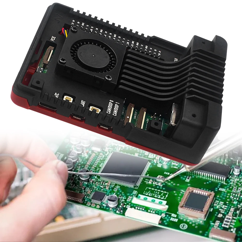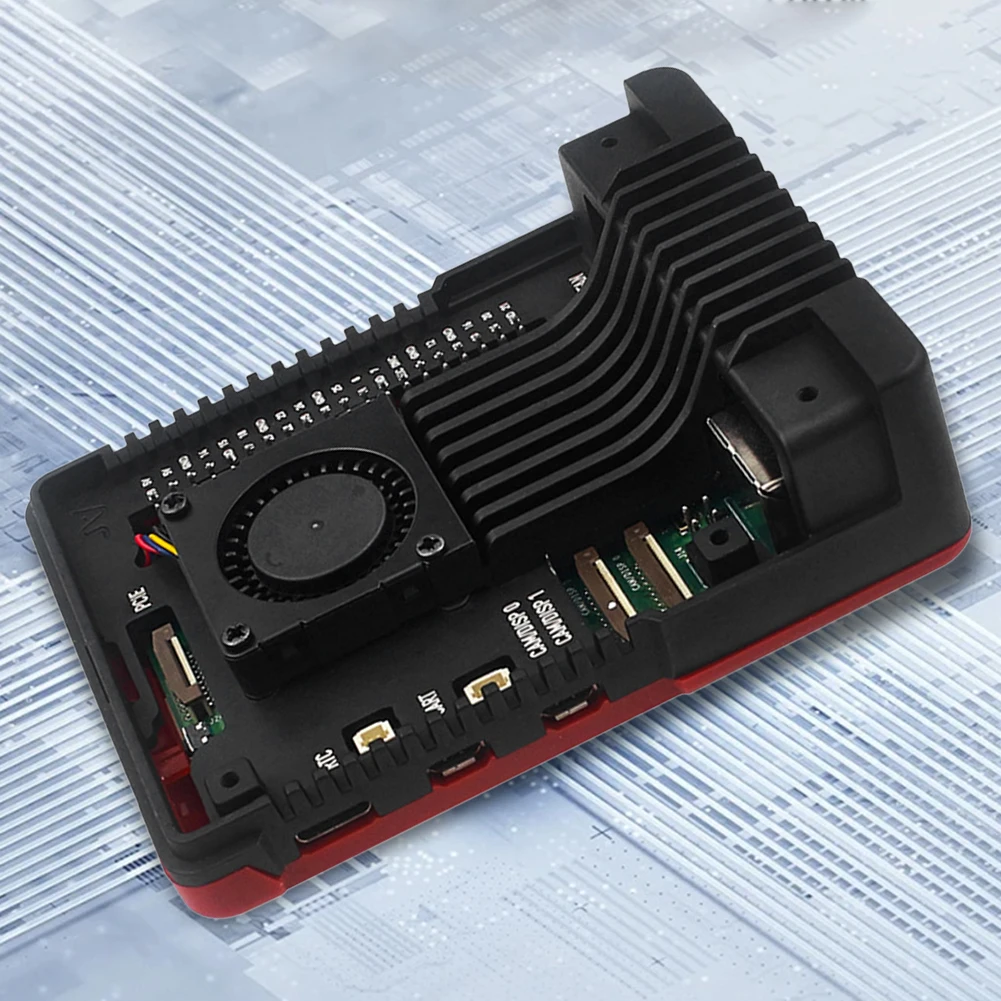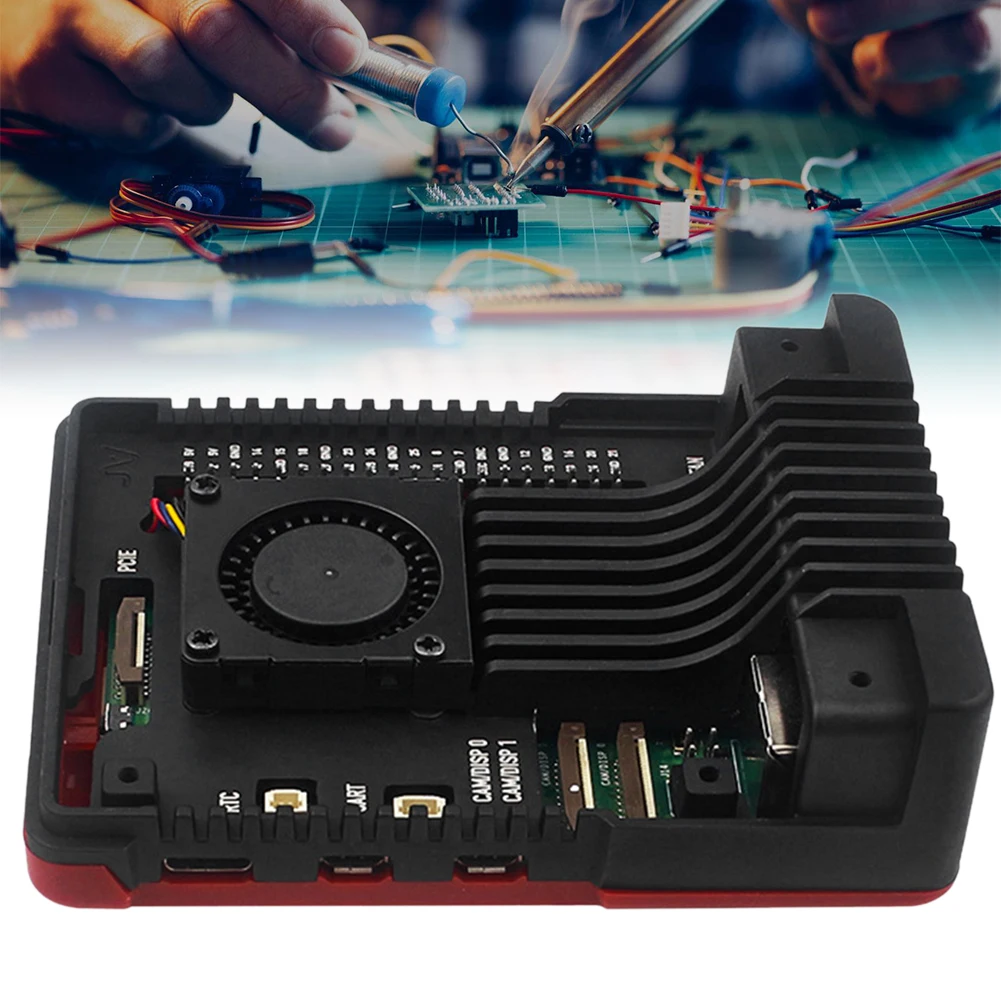 2. Boîtier en aluminium élégant: Construit en alliage d’aluminium de qualité supérieure, le boîtier présente une finition polie exquise en noir et rouge. Ce design élégant rehausse l’attrait visuel du Raspberry Pi 5, ajoutant une touche de sophistication à son apparence générale.
