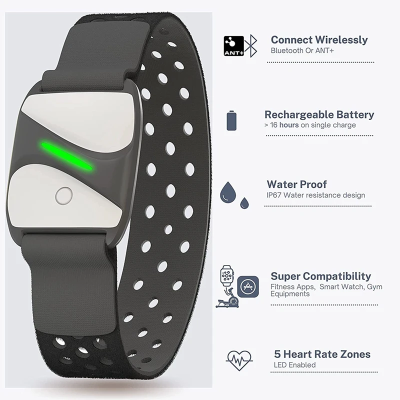 Le moniteur de fréquence cardiaque Armband adopte un capteur HRV avancé pour capturer chaque battement de cœur, vous fournissant des données précises et précises. Notre moniteur cardiaque d’exercice adopte une conception IP67 étanche à la sueur et à l’eau pour minimiser les défaillances potentielles et fournir les meilleures performances dans des conditions humides et sèches. Hautement durable et confortable, la ceinture respirante de ce moniteur de fréquence cardiaque assure un port sec pendant l’exercice.
