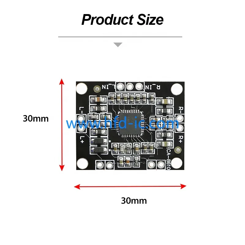 L’amplificateur de puissance numérique PAM8610 est un module de puissance d’amplificateur audio de haute qualité. Il fonctionne en classe D avec une modulation PWM et utilise la puce PAM8610 pour une efficacité et une puissance accrues. Il peut produire une puissance de sortie de 2x15W sous une tension recommandée de 12V. La puce ne nécessite pas de dissipateur de chaleur et offre une protection contre la surchauffe et la surintensité.