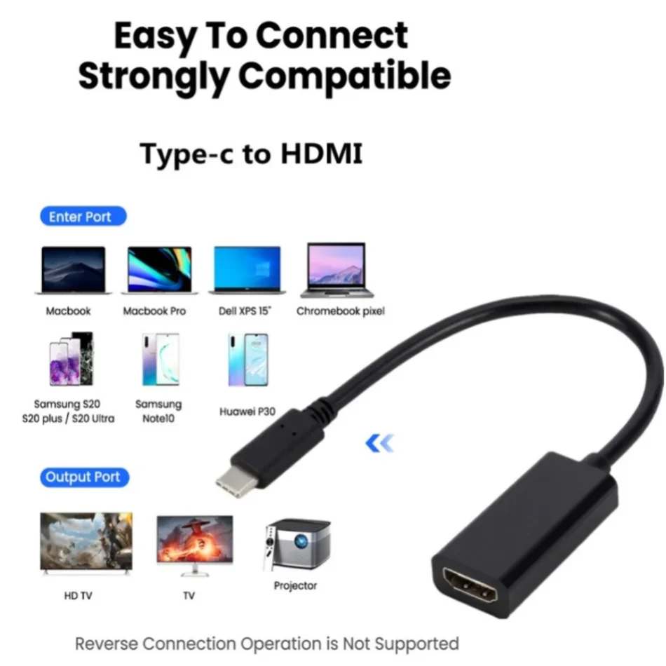 - Largement utilisé dans: une nouvelle génération de téléphone portable/ordinateur/ordinateur portable/projecteur, etc. avec interface USB 3.1 Type C (mode DP), connectée par cette ligne de conversion et convertie en (vidéo HDMI) sortie multifonctionnelle d’application.