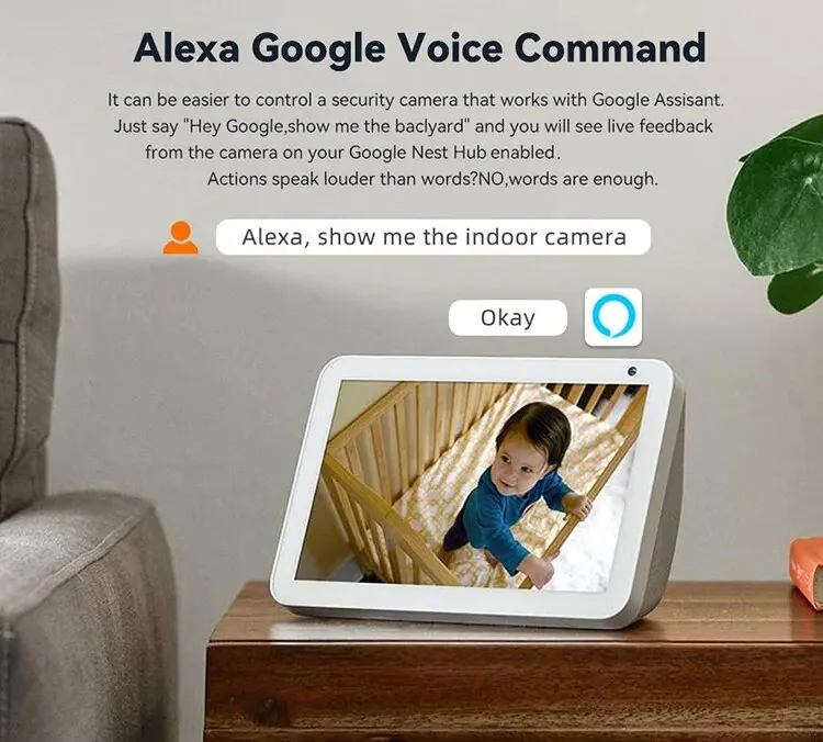 Vous pouvez partager vos caméras avec votre famille, vos amis et d’autres appareils pour regarder ce qui s’est passé à tout moment. Jusqu’à 20 utilisateurs peuvent être partagés (uniquement via le premier téléphone mobile). Compatible avec Alexa et Google Assistant. La caméra intérieure et l’application sont faciles à installer et simples à contrôler.