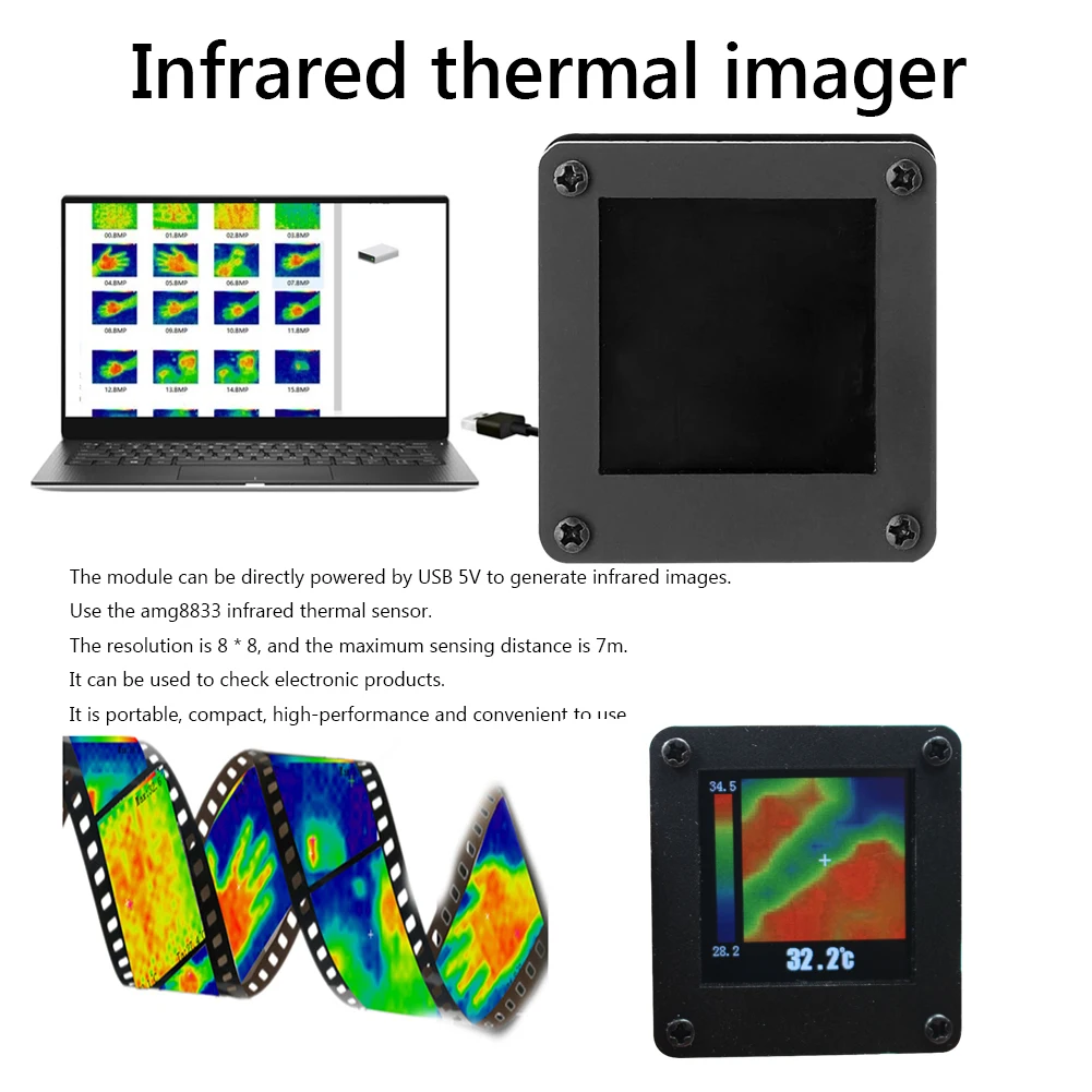 Les caméras thermographiques IR multifonctionnelles sont dotées d’un capteur thermique IR AMG8833 avec une résolution de 8×8. Elles offrent une distance de détection la plus éloignée de 7m. Ces caméras sont idéales pour une utilisation domestique.