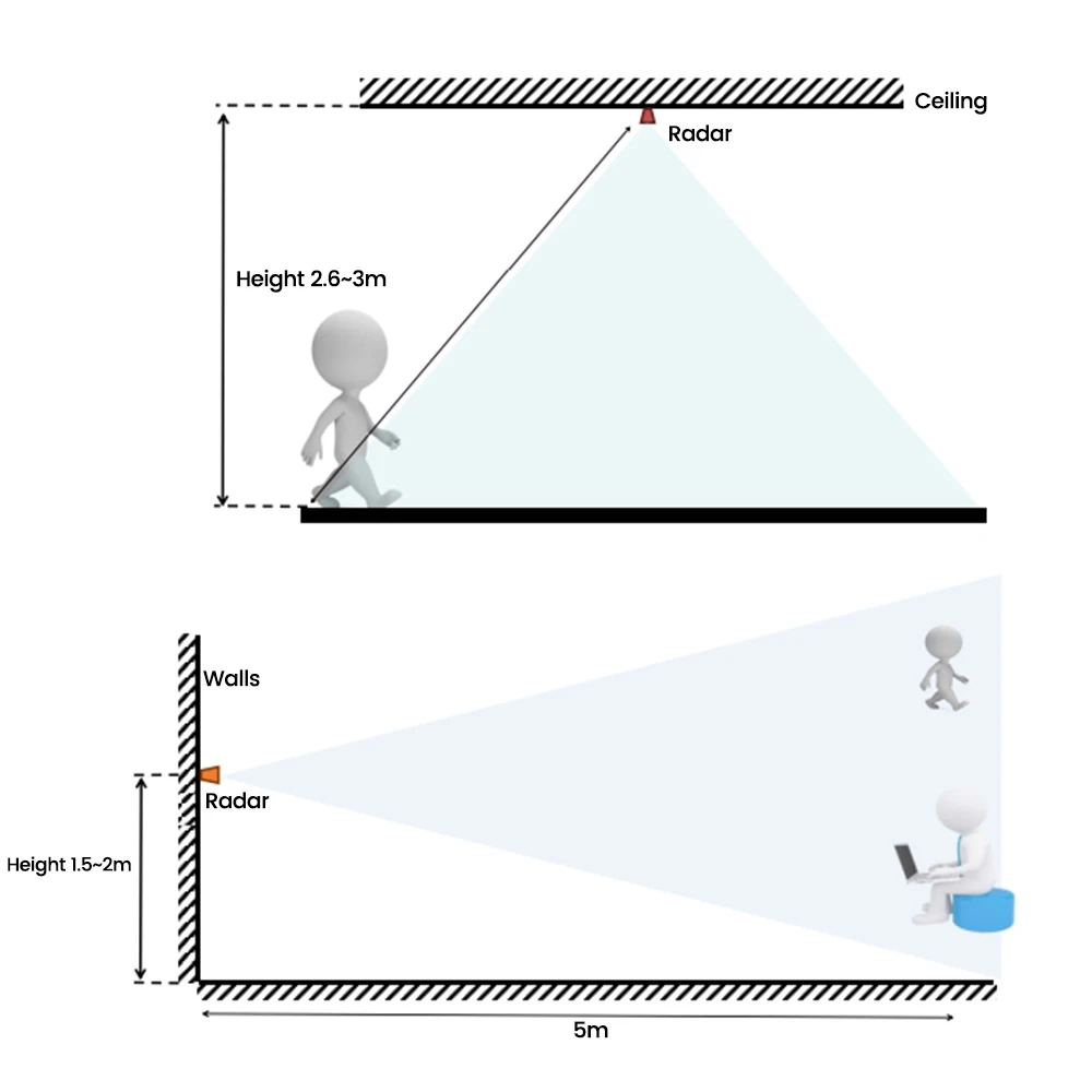 De plus, ce capteur permet une identification précise dans l’intervalle et prend en charge diverses méthodes d’installation, ce qui le rend polyvalent et adaptable à différentes scènes.