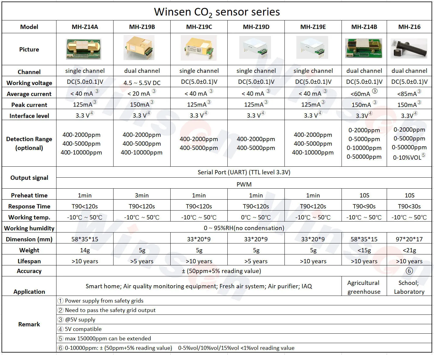 - Modèle à canal unique: MH-Z19C/MH-Z14A/MH-Z19E/MH-Z19D