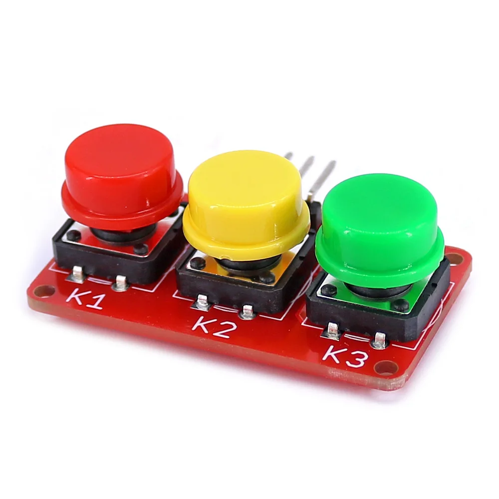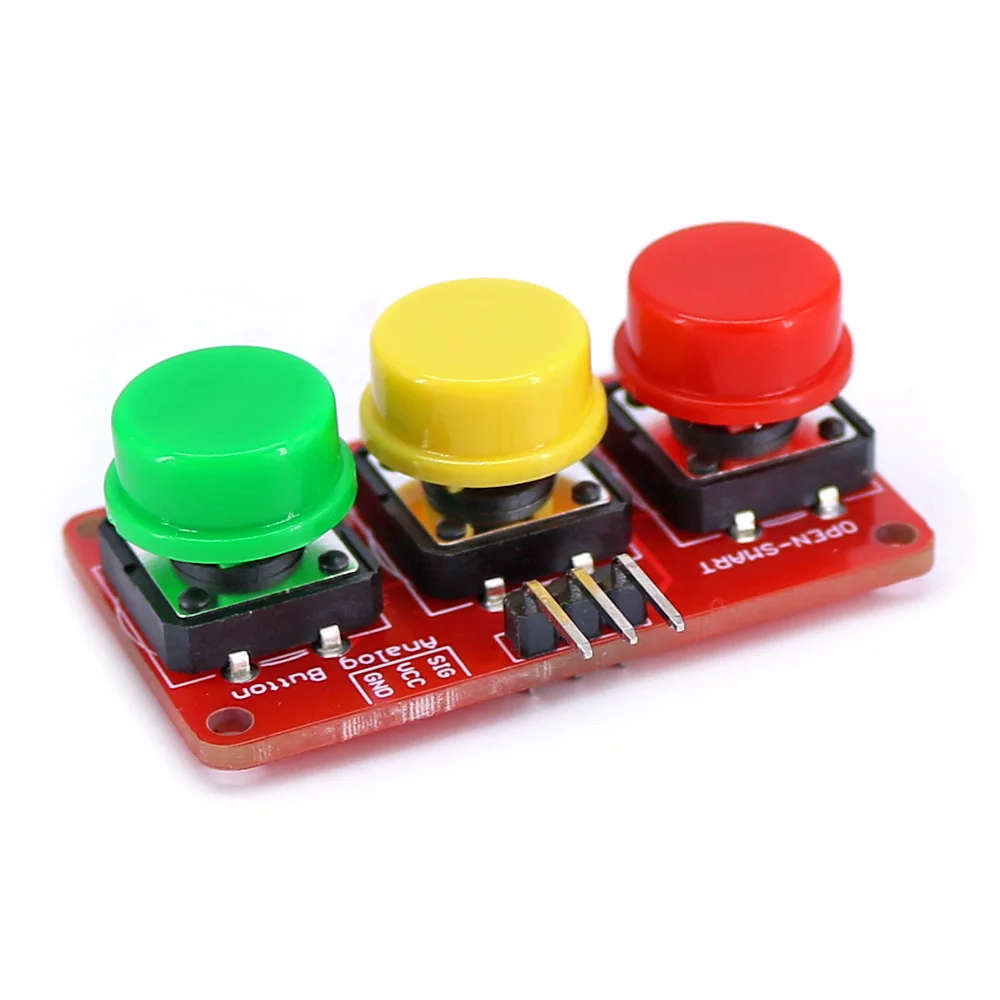 Le module est un capteur de bouton analogique à 3 canaux, avec des capuchons colorés en rouge, jaune et vert. Plus vous appuyez sur la touche numérique, plus la tension est élevée. Si vous fournissez une alimentation de 5V, la tension de sortie est: