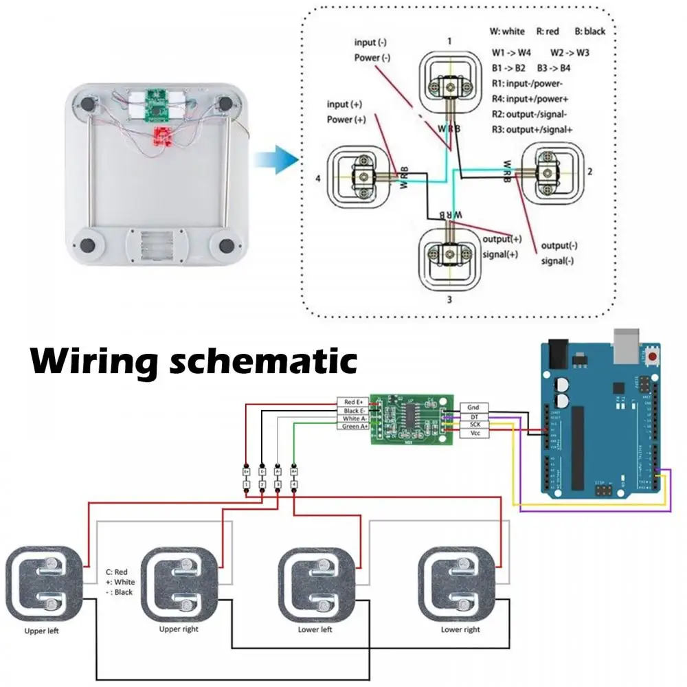 3. Utilisez quatre capteurs pour former une mesure à pont complet, plage de mesure pour la somme de quatre capteurs: 50kgx4 = 200kg